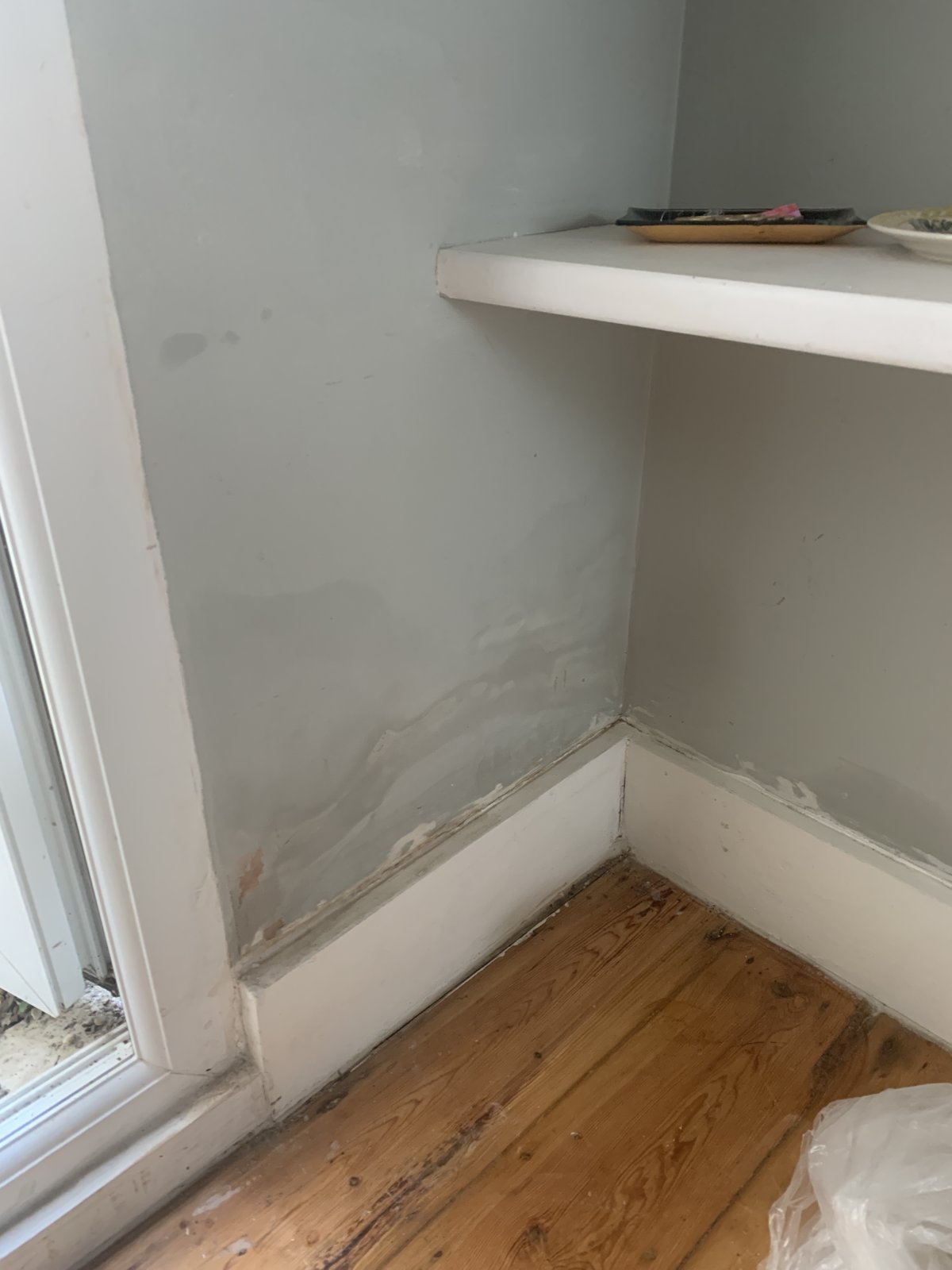 Recently moved into a Victorian terrace. There is damp on the rear corner wall (see photos). Looking under the floorboards at the rear of the house, the rear joists that runs parallel to the rear wall is also damp (not sure if you can see it from the photo, but you can see watermarks on it, along with what I assume is white mould on top). The ground below the house is dry. I think I can see a slate DPC, but I’m not sure.