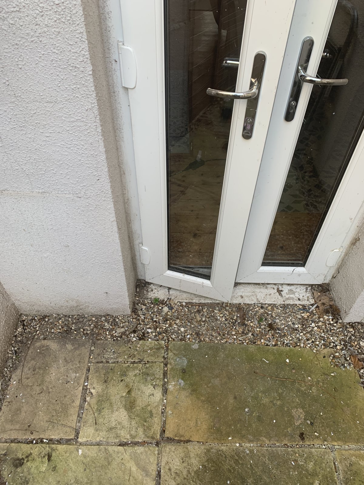 Now from researching on this forum, I assume this damp is being caused by the high external ground level. The previous owners had laid a patio on top of an existing one. I am guessing this was done around 4-5 years ago. The internal floorboards are below the external ground level. The photos show this. There is concrete under the stone around the edge of the patio, and it also slopes towards the rear of the house. So I think rainwater has nowhere to go, except sitting against the brickwork.