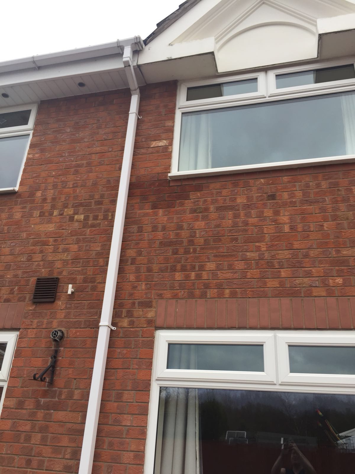 As you can see there is a damp patch in the lower left corner of the upstairs front window