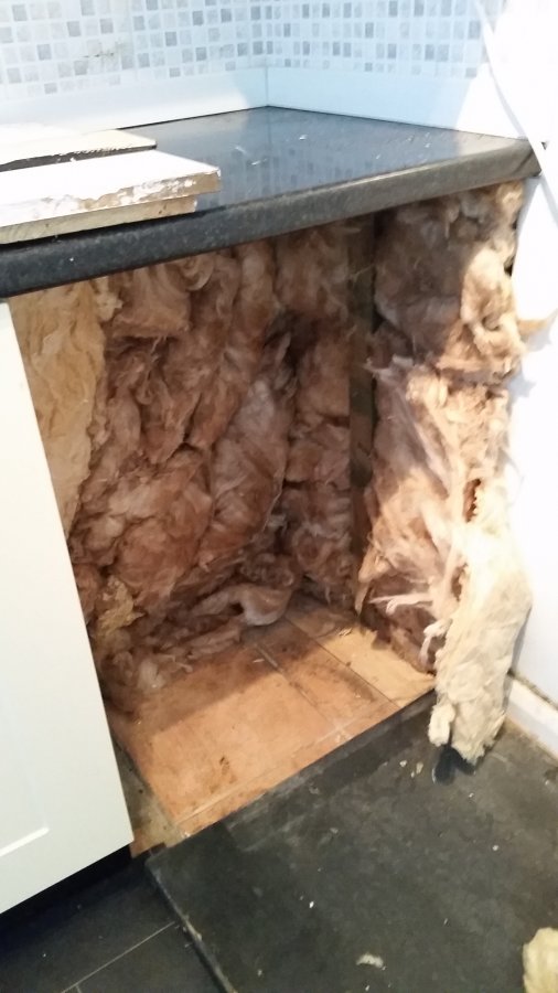after pulling out the corner counter unit i found the corner had been stuffed with what looked like insulation.