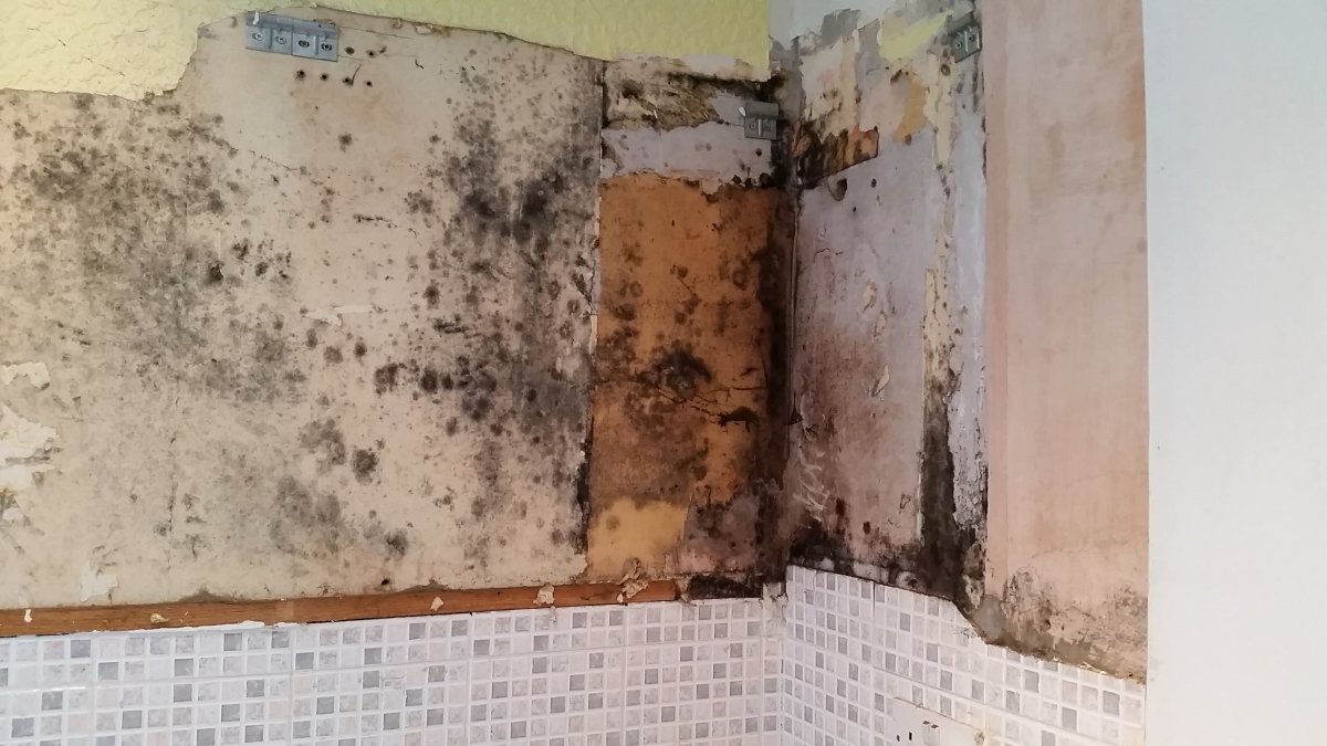 after removing the units from above and knocking off tiles and wallpaper it looked like this