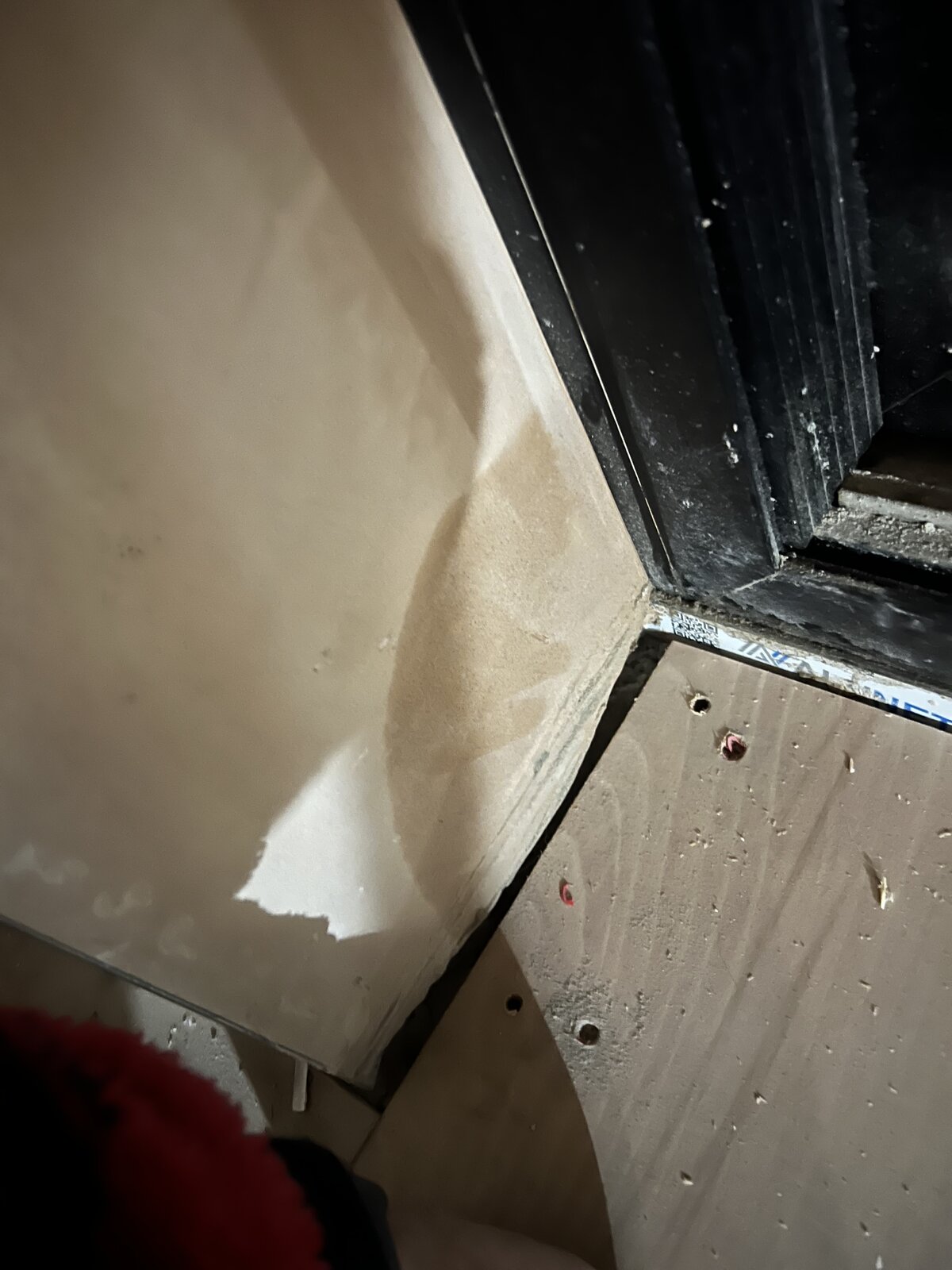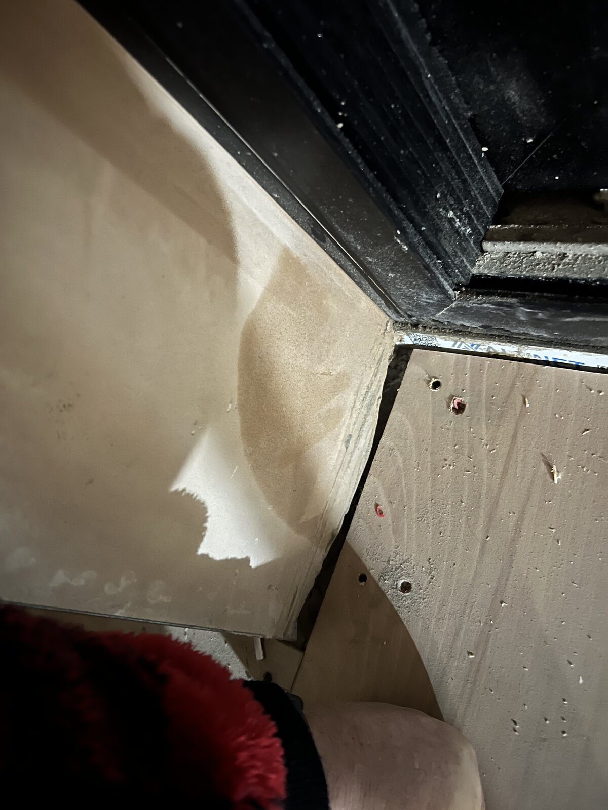 The damp patch is at the bottom corner