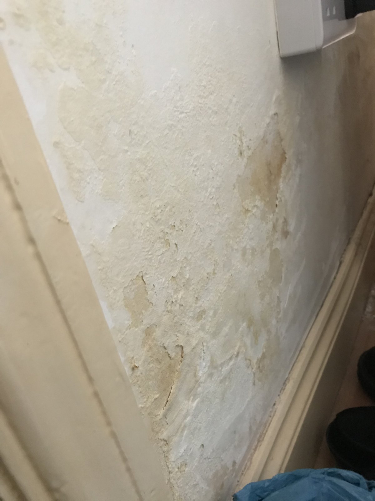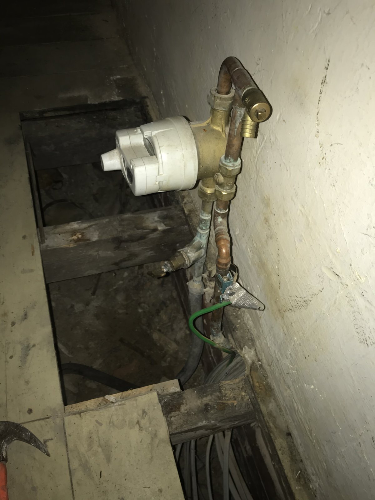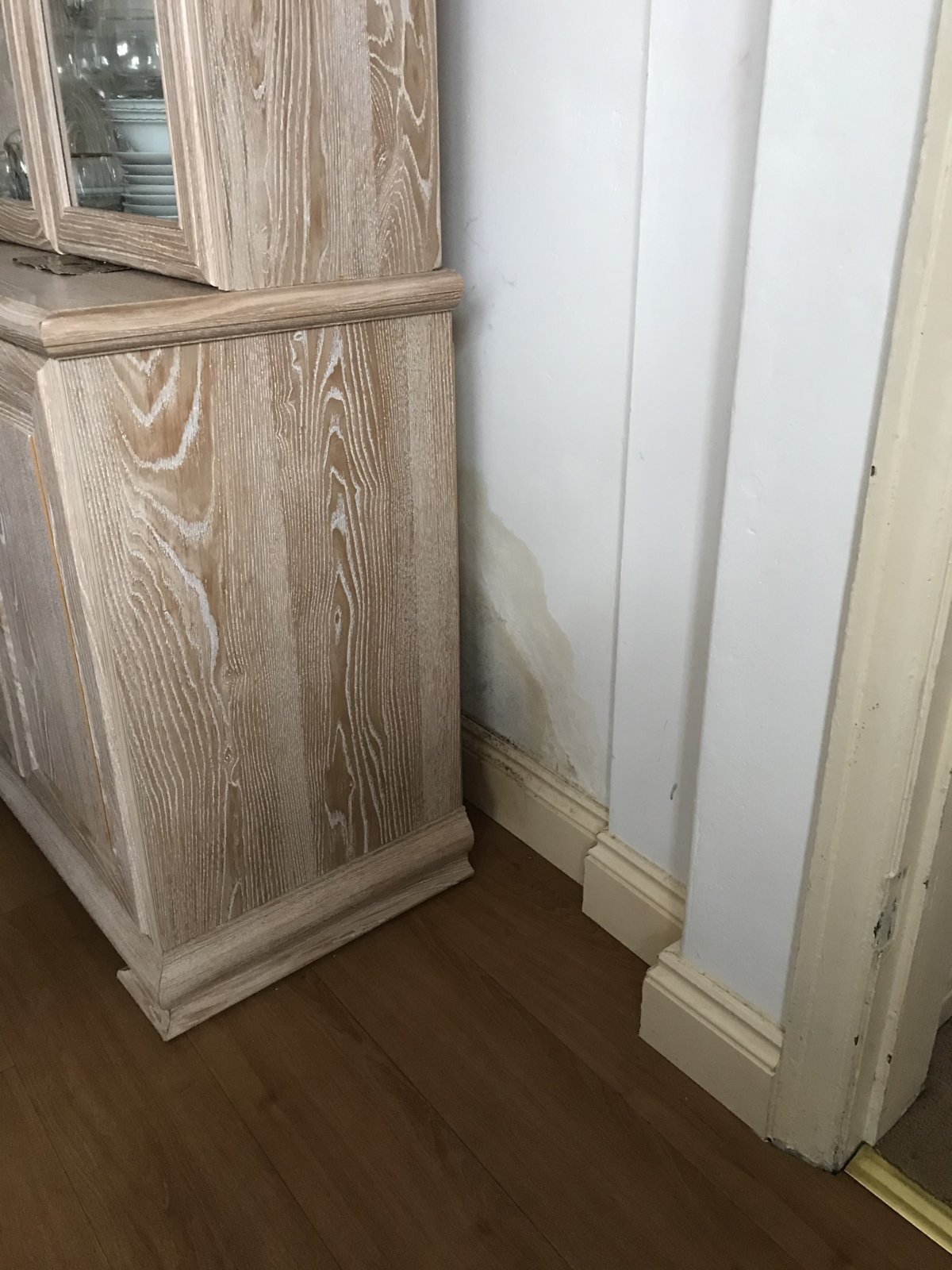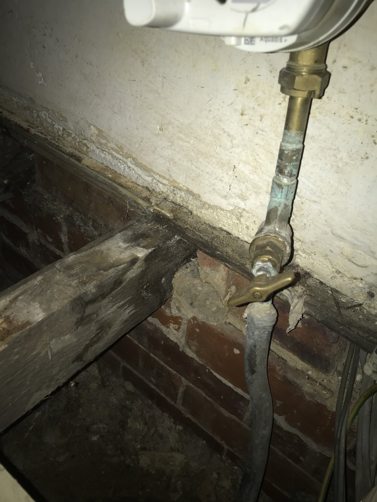 I have a damp patch on a wall in the dining room. Behind this wall is the stair cupboard and this is where the water feed for the house comes in. So i took up the boards in there expecting to find the water pipe has been leaking.