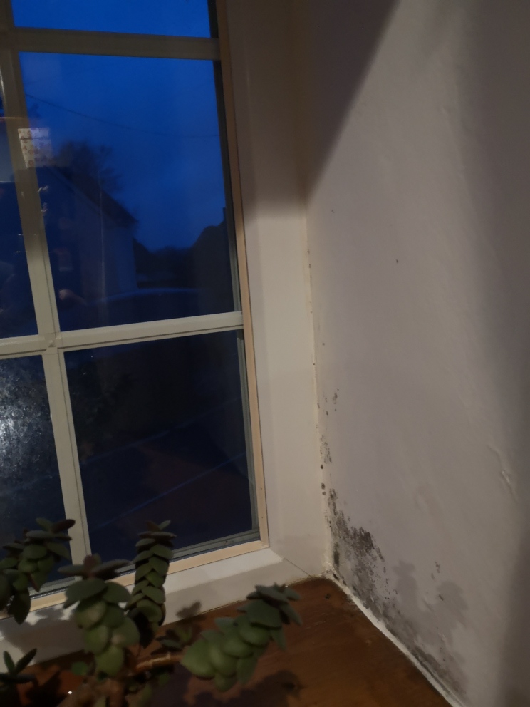 not sure if this a window issue but I am in this house for the first winter and I am getting black mould around the window frame where it meets the wall. The walls of the house are solid stone around 2ft thick. The house is in 2 sections and the more modern section with cavity walls is not showing any damp. I believe all the windows in the property were replaced at the same time. I am wondering if the fitting company did not fit the windows in the old part of the house correctly. I do have a problem with water ingress above one of the other windows (window cladding leak picture) but it is hard to tell exactly where it is coming through due to wooden cladding in the window casement. It also looks like a DPM has been installed under the planks above the window but it doesn't appear to have worked as water drips through around the middle plank when it rains