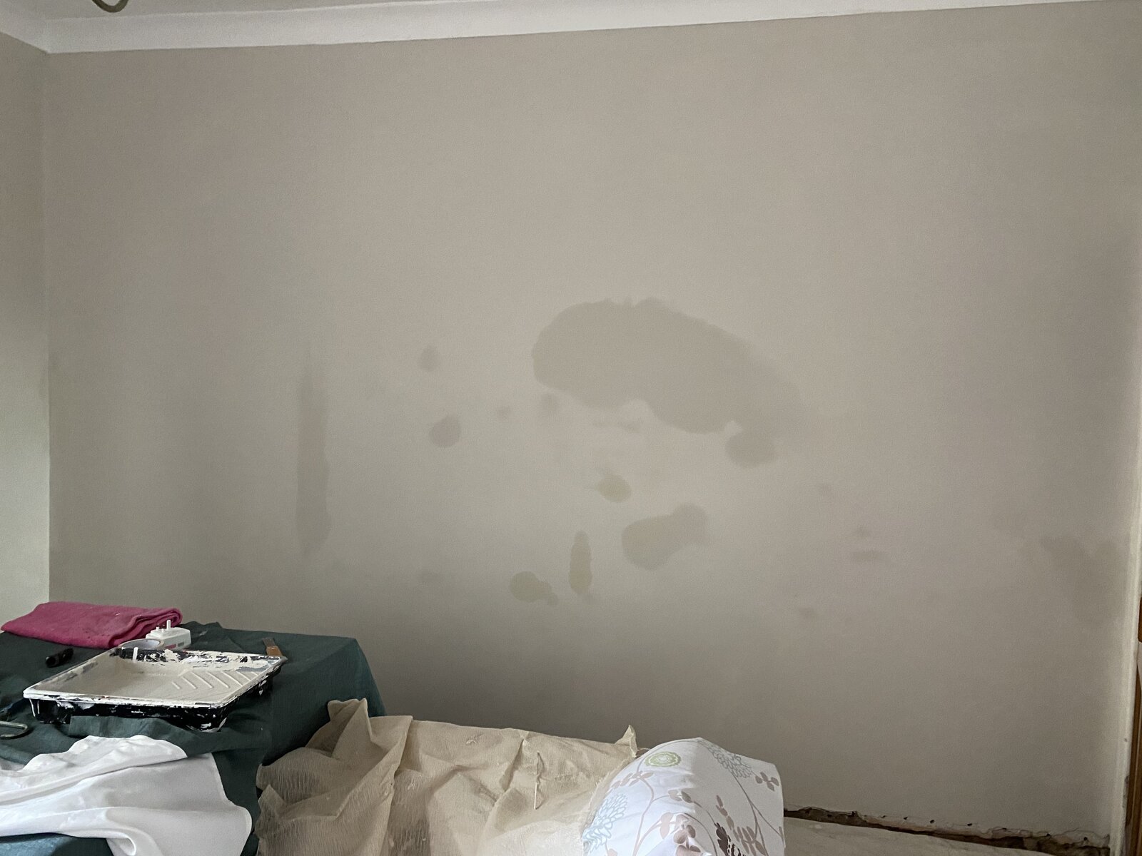 I live in a mid terraced house. I have had this wall skimmed and painted recently. These damp patches are showing up in the middle of the walls. Does anybody have a clue what they might be. This wall is the living room wall (ground floor) adjoining to the next house. Thanks