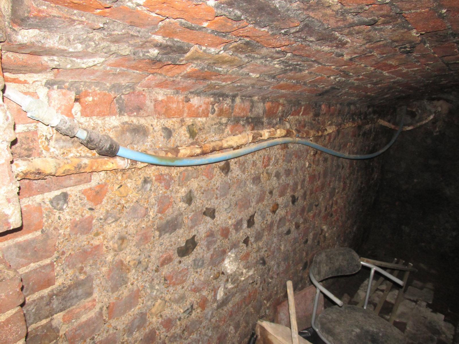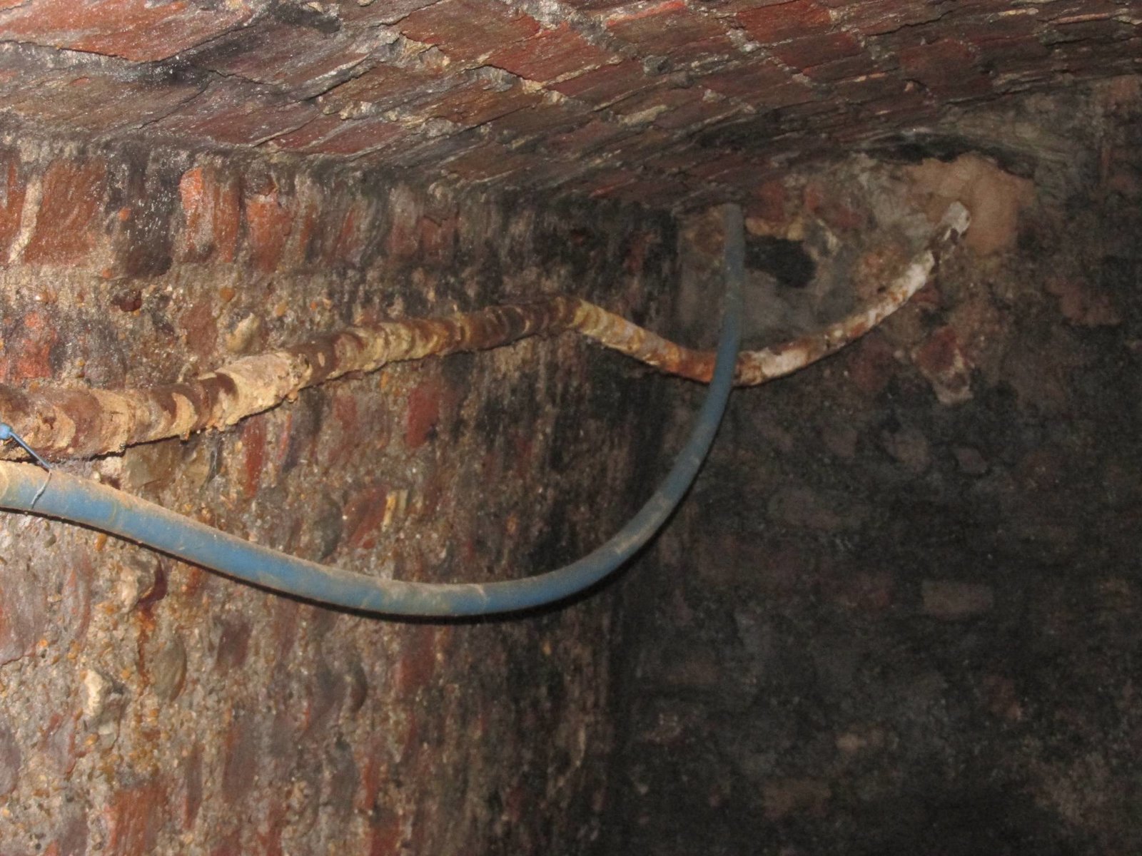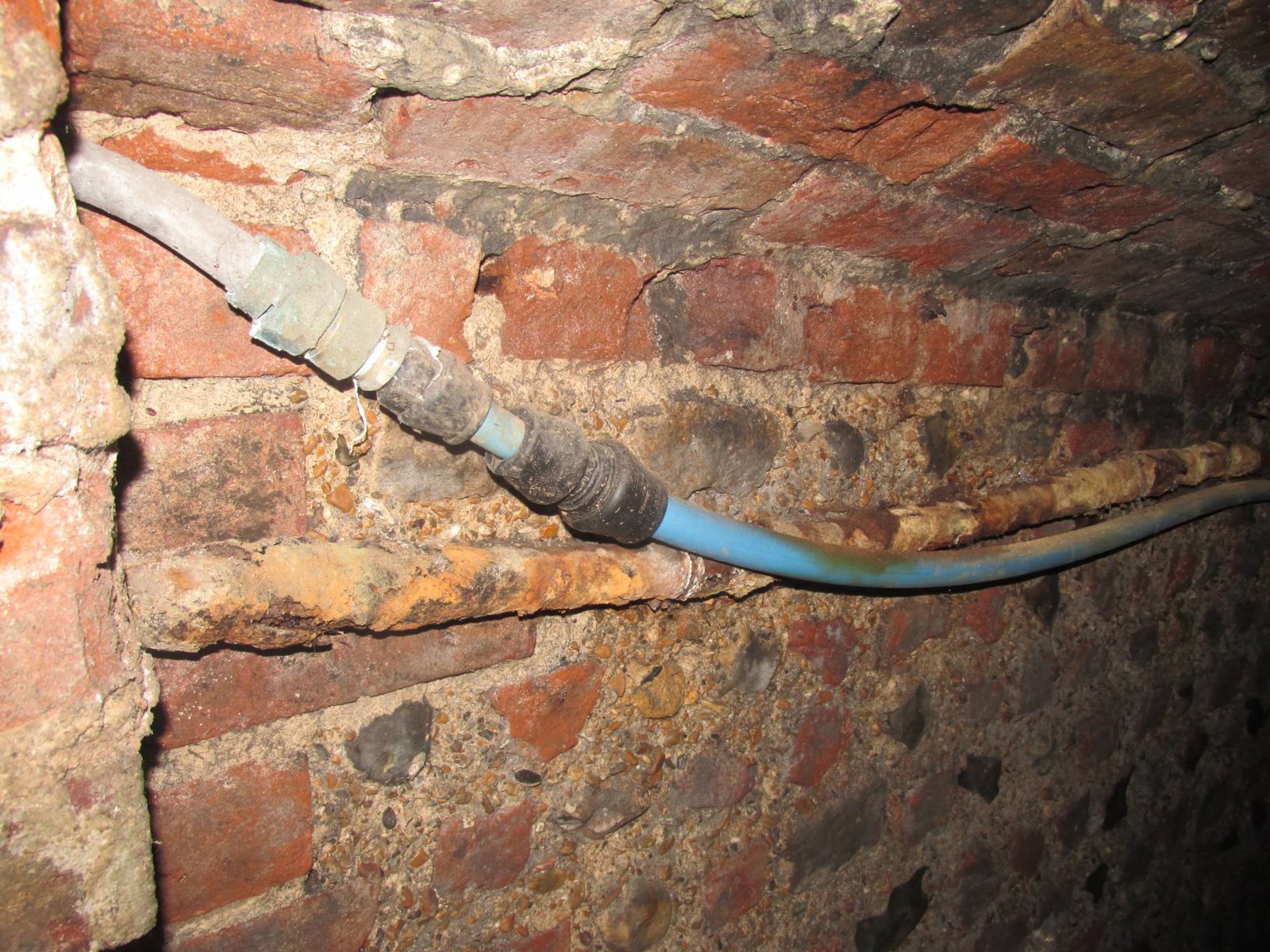 As you can see in the photos there is what Im pretty sure is a water pipe and maybe... another water pipe? covered in something that has gone seriously rusty. These run down the left side wall.