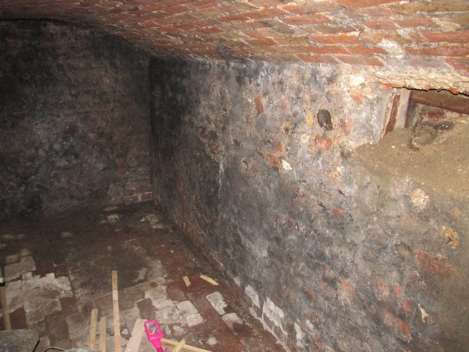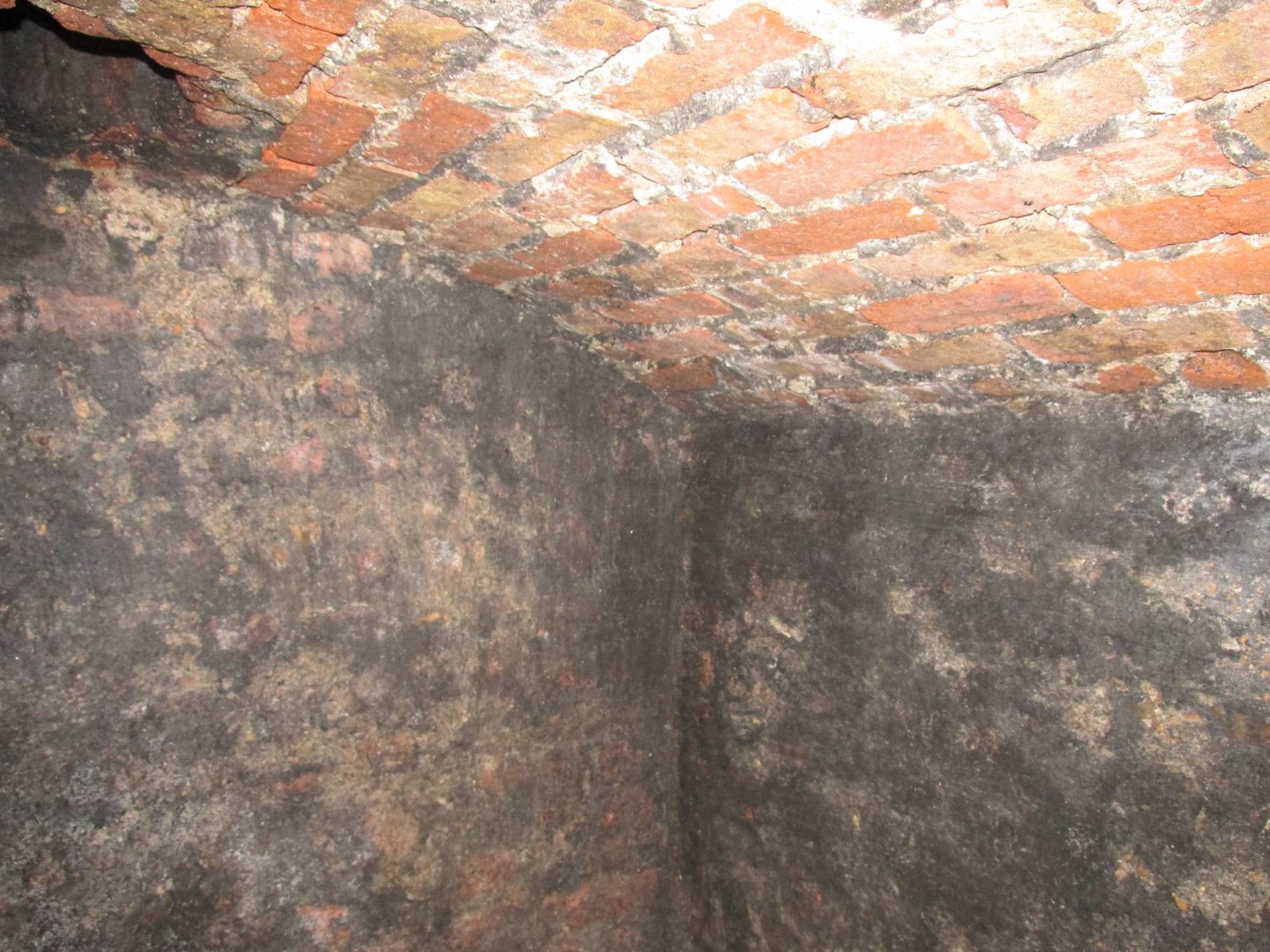 The floor seems quite dry its just the roof and side walls that are really wet. Above this is a shared out door walkway which leads to the door for all the above flats. Water seems to be coming in from above as well as the sides judging by the stalactites in the photo.