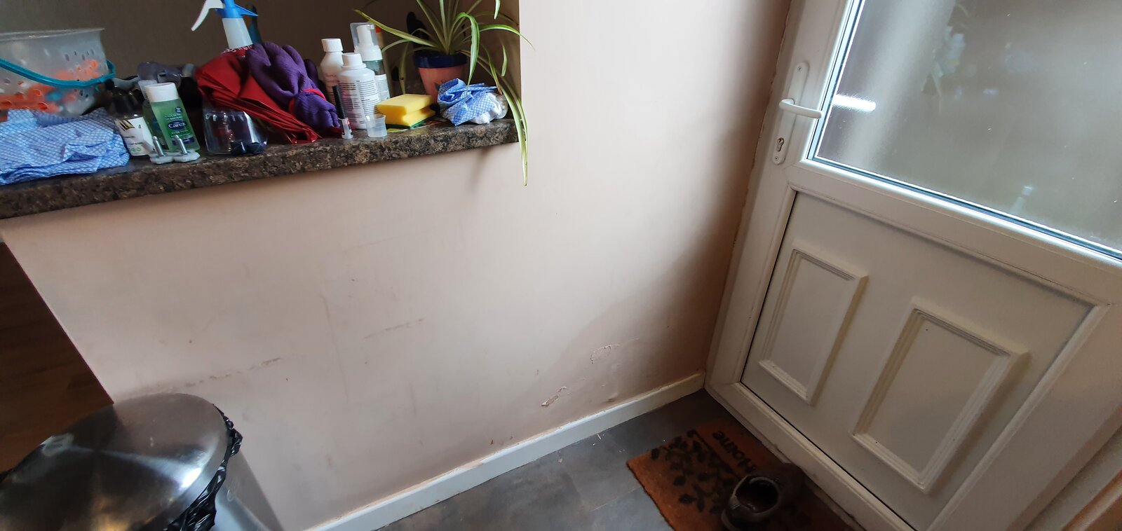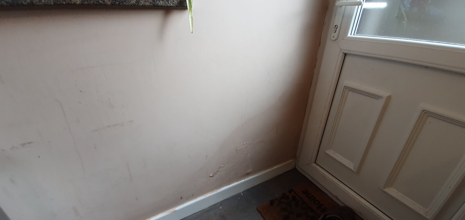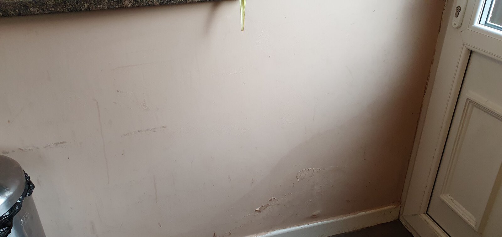 Moved into our house just over 2 years ago now and have a small area of damp near the back door in the kitchen. This was present when we moved in and was noted on our survey but it wasn't deemed a major issue. This wall in question would have been the old external wall/window frame prior to an extension being built way before we moved in.