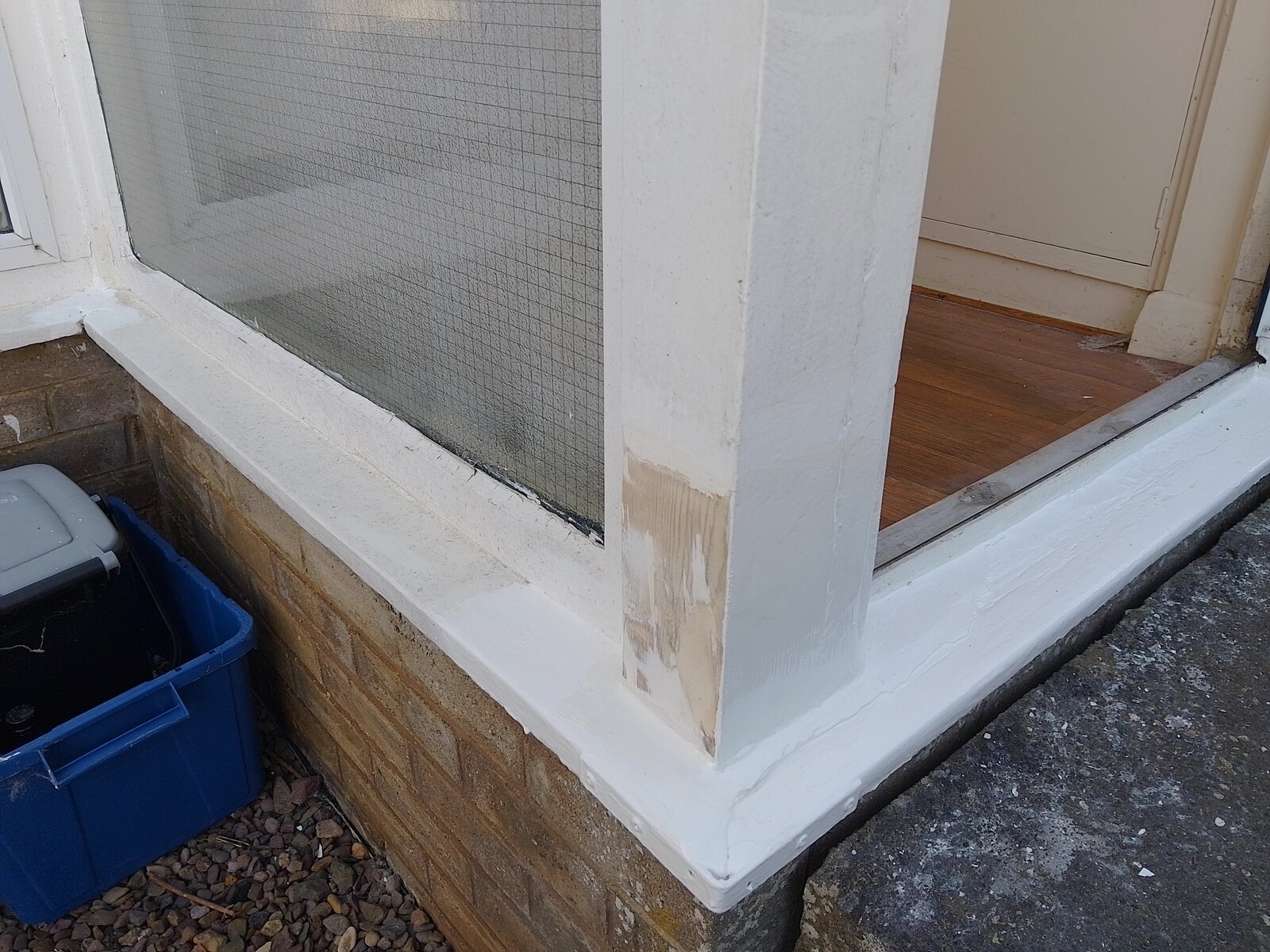 I'm going to be sanding back the doorpost and repainting it. Is it a good idea to leave a section of it unpainted? Or maybe there is a breathable paint I can use? Or some kind of wood treatment like couprinol? I'm not too fussy about how it looks, I'd be happy to do the west-facing bits with regular gloss paint and give the north-facing part of the door-post a different colour (or plain wood with some couprinol-type treatment). The door faces west, so the untreated section in the picture faces north and gets very little rain or sunshine.