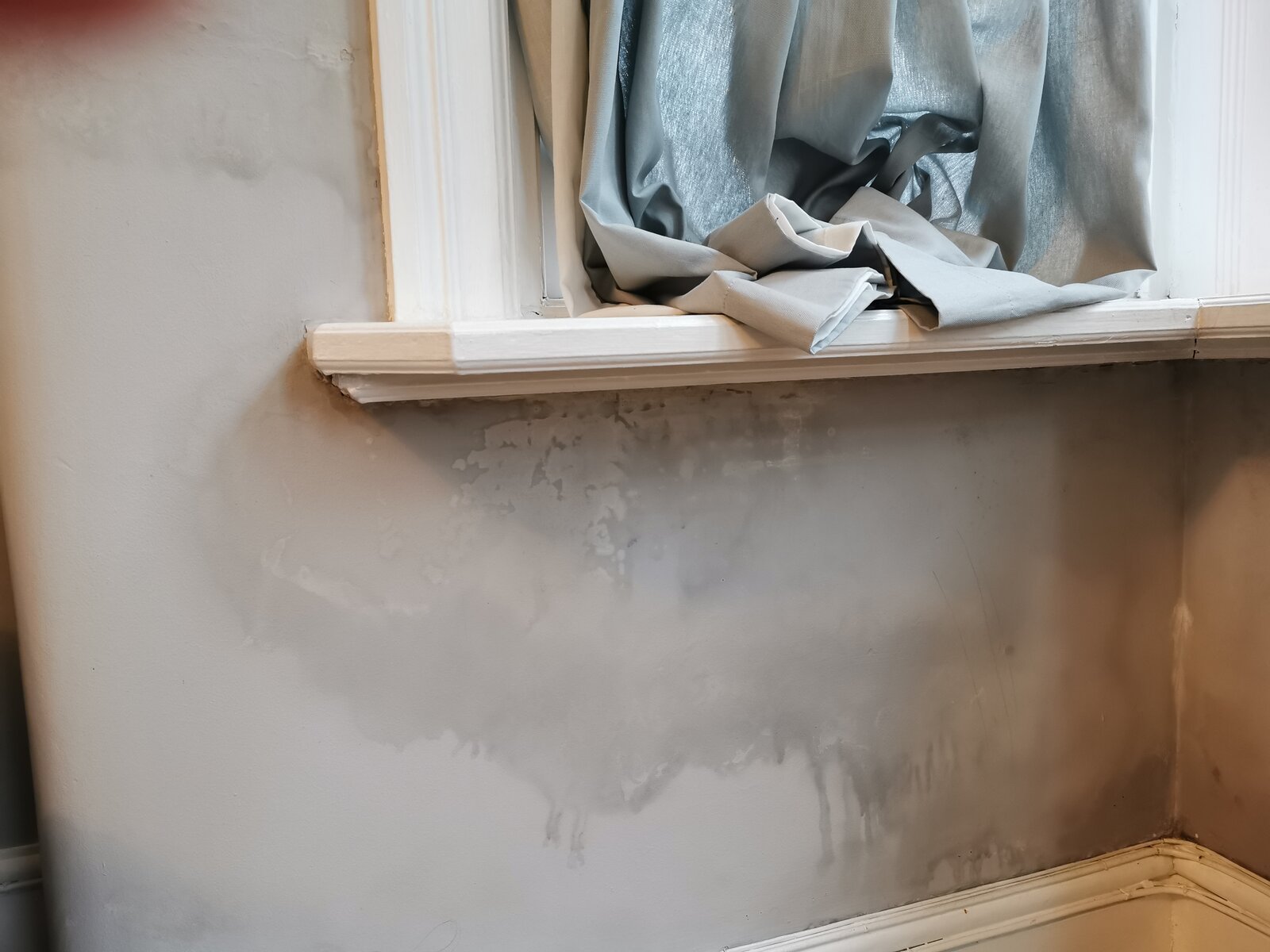 We've had issues with damp around the bay window in our current property since repainting the front room last year. The damp is quite bad under the window on one side and there's a line of it straight across the wall either side about a meter up as well as just general patches here and there. I've attached a photo of the worst of it.