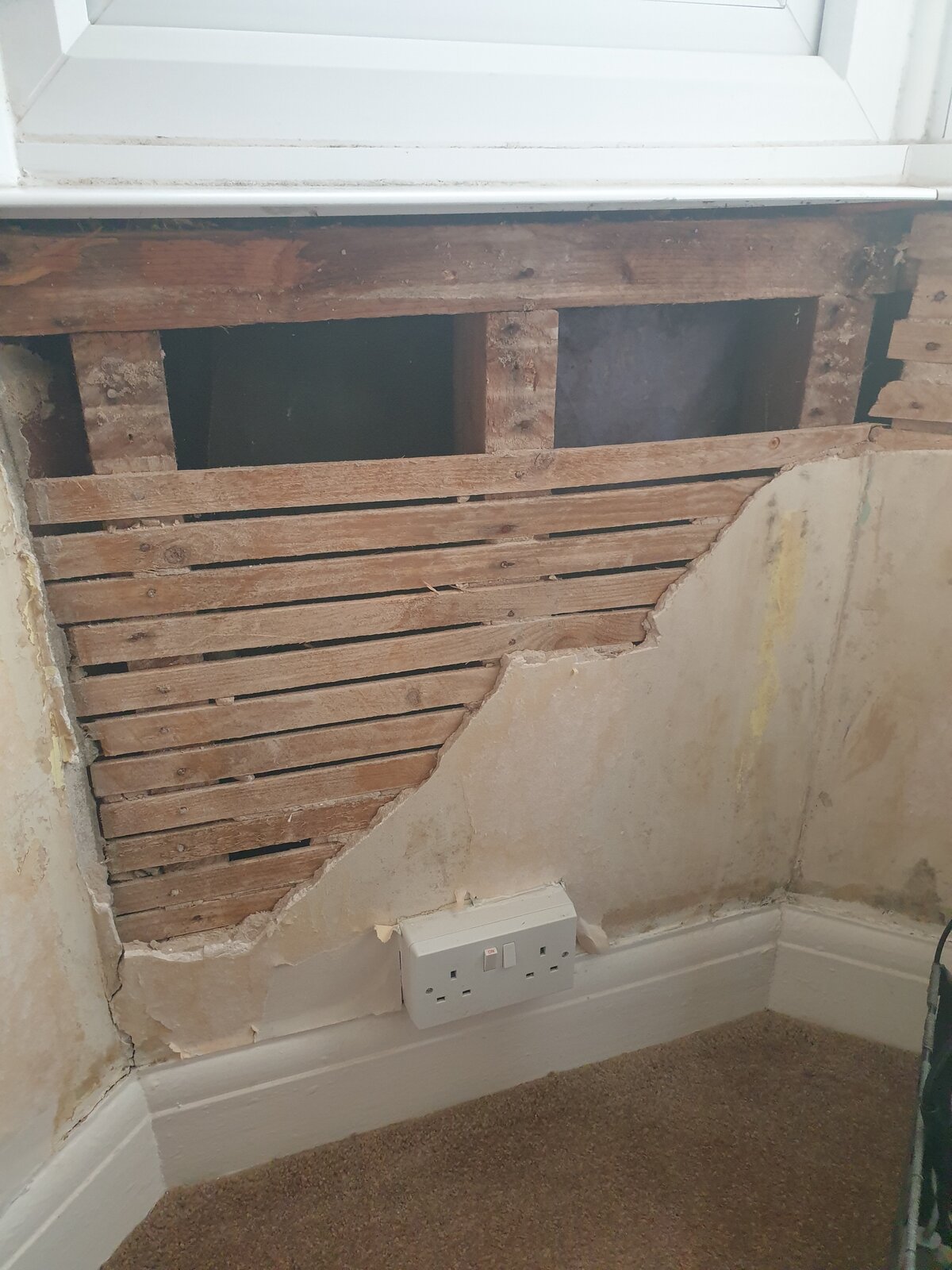 Hi, I have two wet patches on my upstairs bay window wall. After taking some of the plaster board off it revealed that the external membrane/liner was wet. Is the problem my render on the outside or is it a case of ripping all the plaster board off, drying out and then fitting a new waterproof membrane and new plaster board. TIA