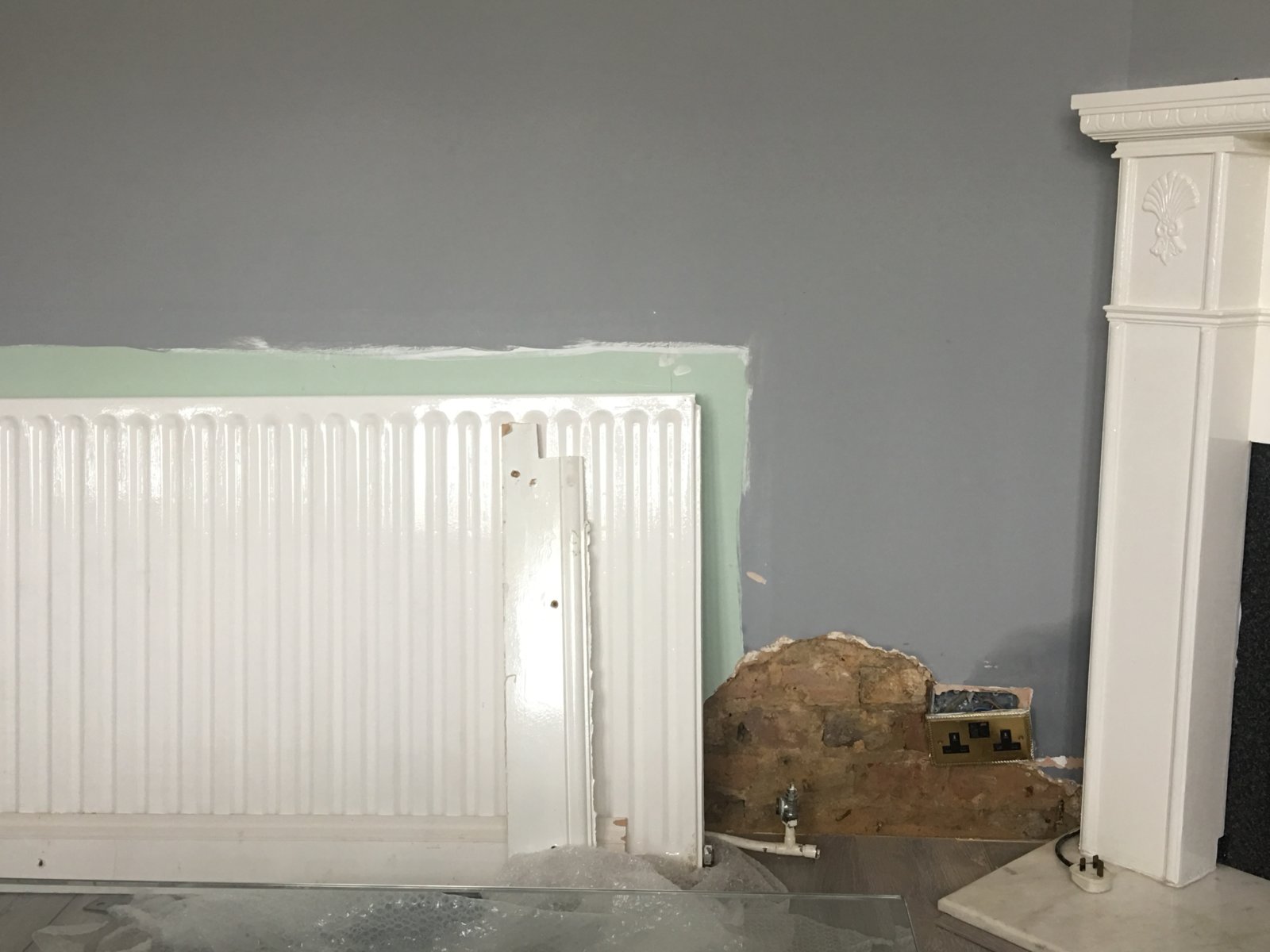We have just moved to a fully refurbished house. Days after the refurbishment was completed, we have noticed a damp area on the wall (10 cm above the floor). We have taken the radiator out, even took out the area where the dampness was seen (picture attached) but didn't find anything. We used the dryer to dry the area and the dampness has gone for now but we are still worried that it might come back again. Anyone faced similar situation before? Any help is greatly appreciated.