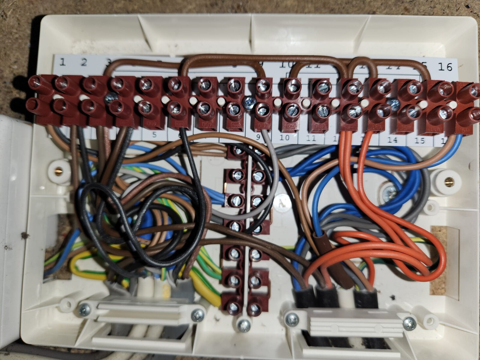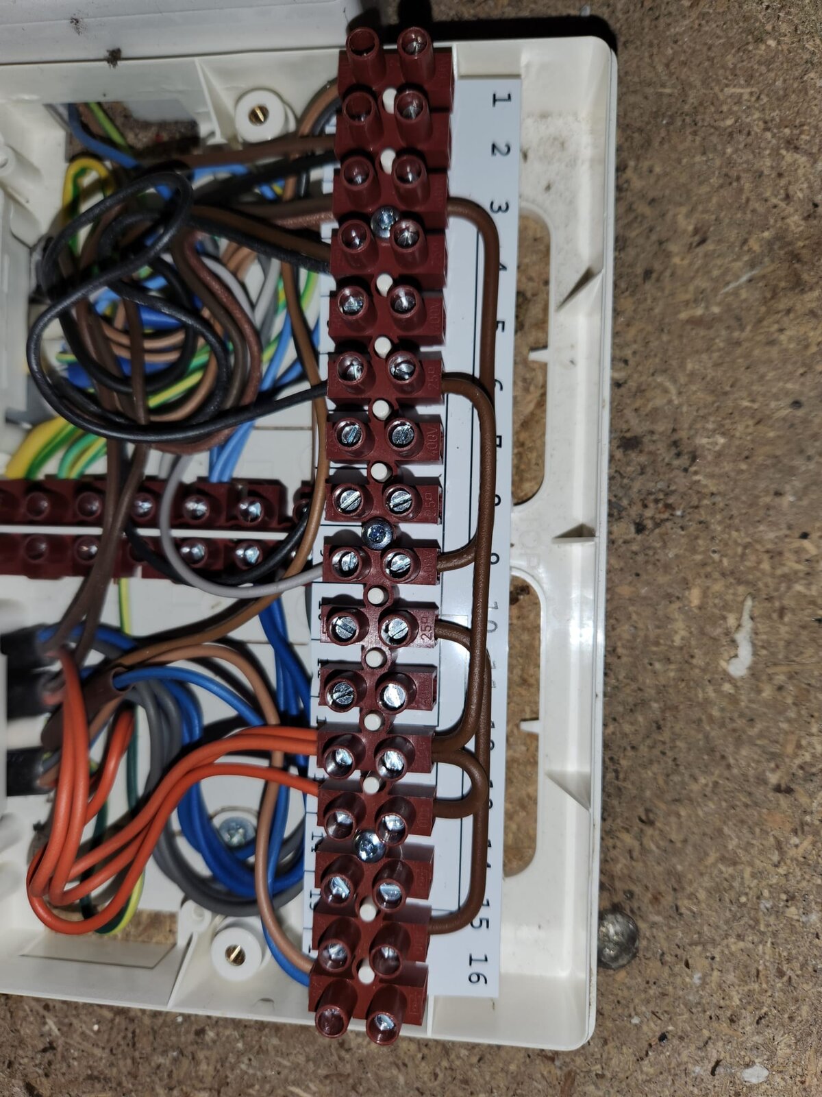 The brown wire from the tank stat connects to terminal 1 in the wiring centre.