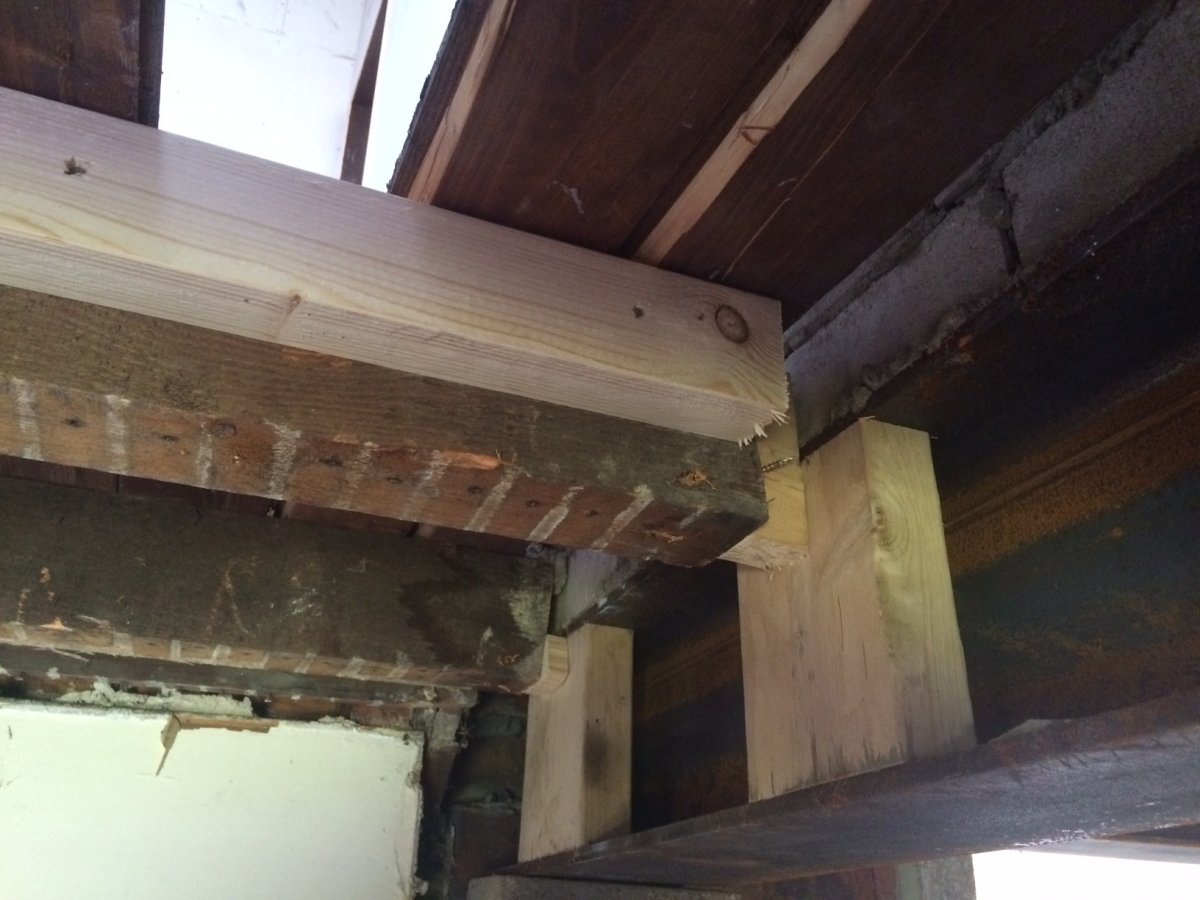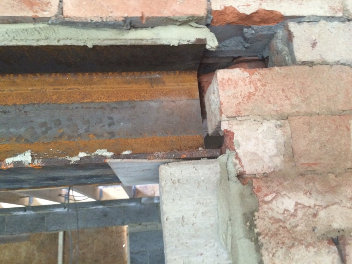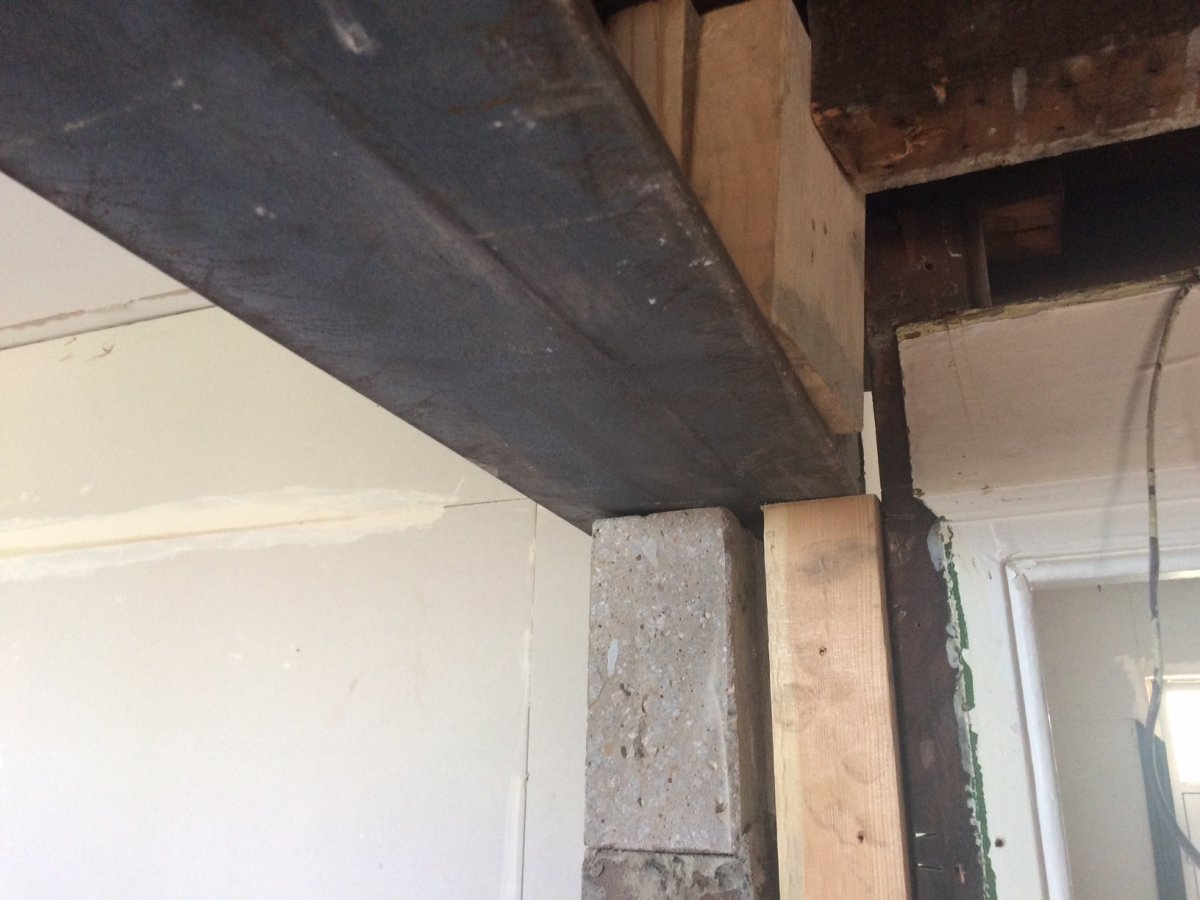 Among other things, the've no insulation in certain parts of exterior walls. They have a 10inch(or so) steel sitting on a 4 inch wall, and have used a 3x2 to pack up one side.