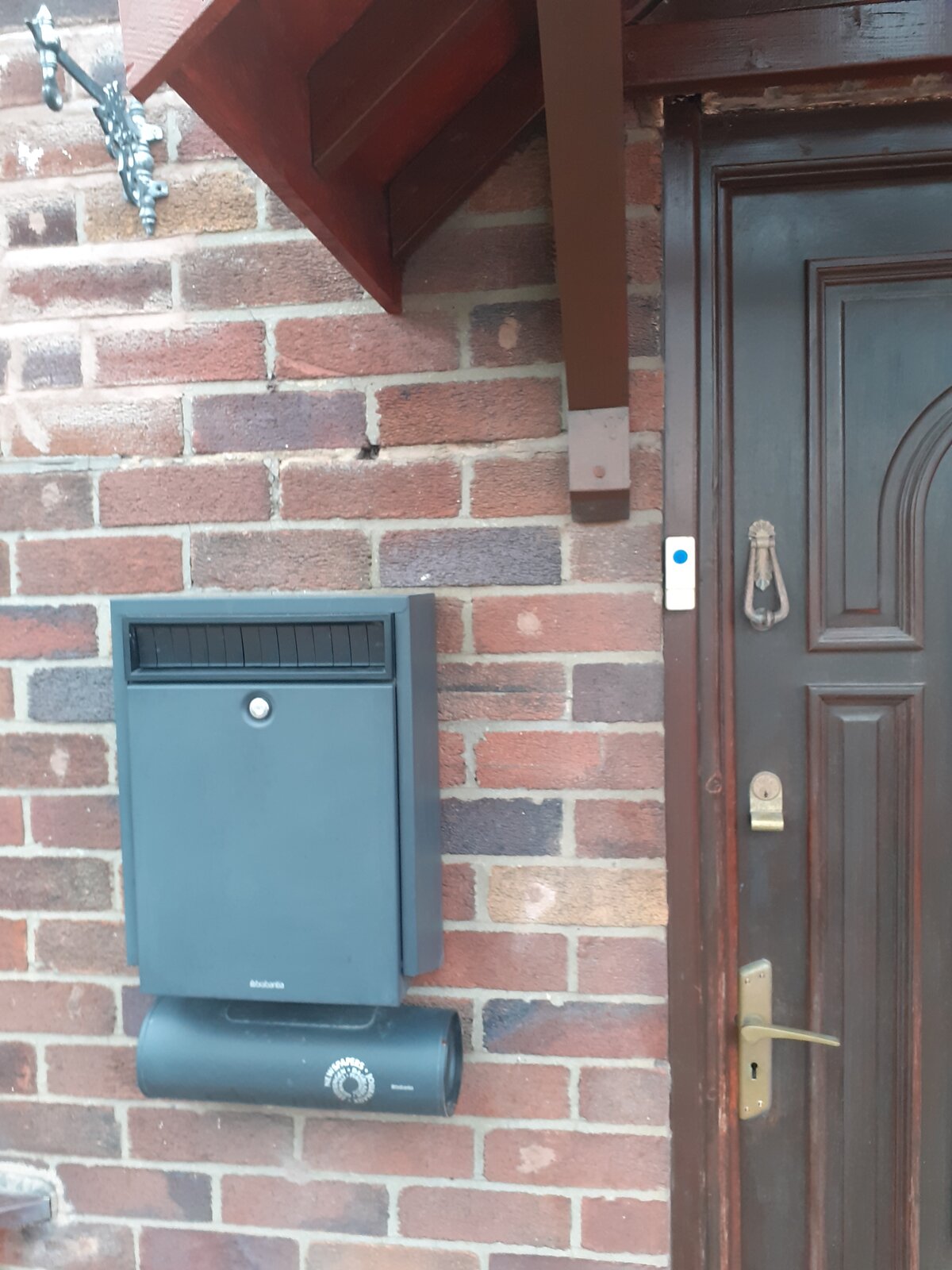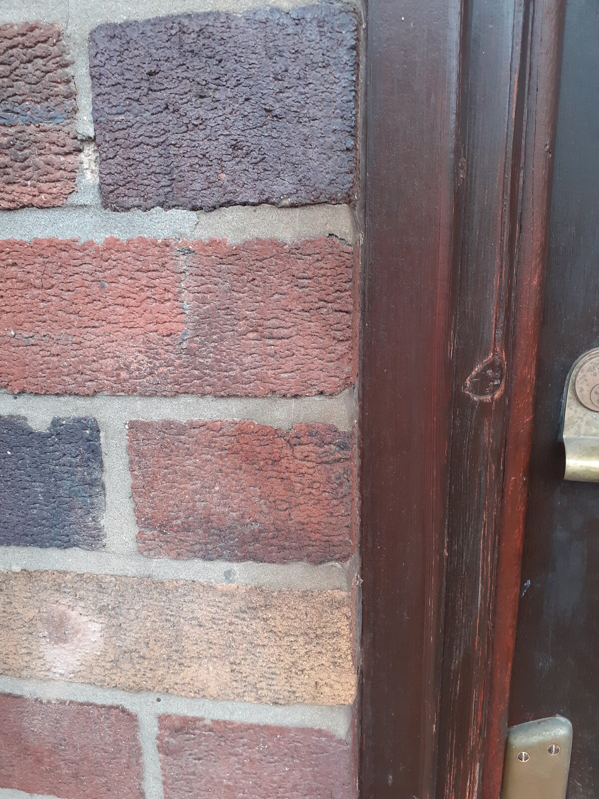 There are a few dark patches to the left of the front door. I assumed this was caused by direct rainfall, but the area is directly beneath a wooden door canopy.