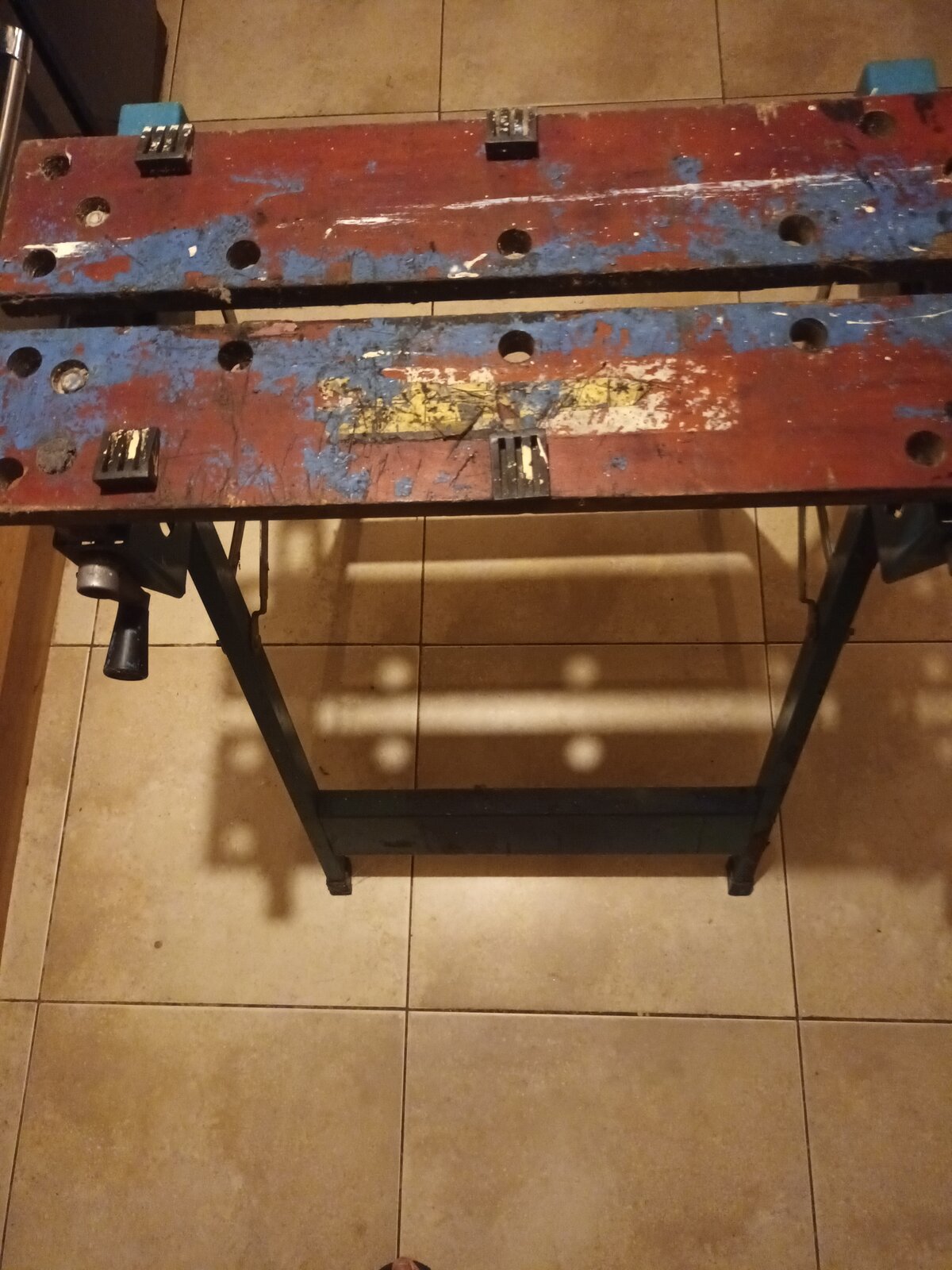 Re the original 1972 Workmate, as pictured with aluminium frame, at that time, B&D made two versions, I had the cheaper blue steel framed version, and still have and use it regularly. I dislike the 'modern' version like the OP has got, 'cos I find the way the legs fold out annoying and the whole thing an inferior design. I guess B&D, to avoid paying Mr Hickman royalties, redesigned it (possibly)