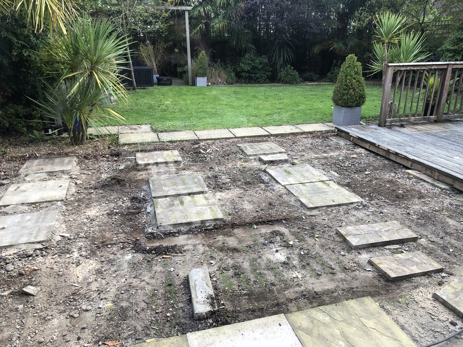 I’m replacing the original floating wooden decking the builders installed in my 13 year old house with a timber base and composite decks. Took up most of the old stuff today and found what I expected, mainly cemented slabs across the decking space. For my new decking I need a joist every 300mm across and so my cemented slabs aren’t always going to be located at the correct intervals. What are my options please? The ground is solid (builders rubble and concrete compacted. Could I cut some wooden support deck posts and bolt them onto the joists in between the slab supports where required?