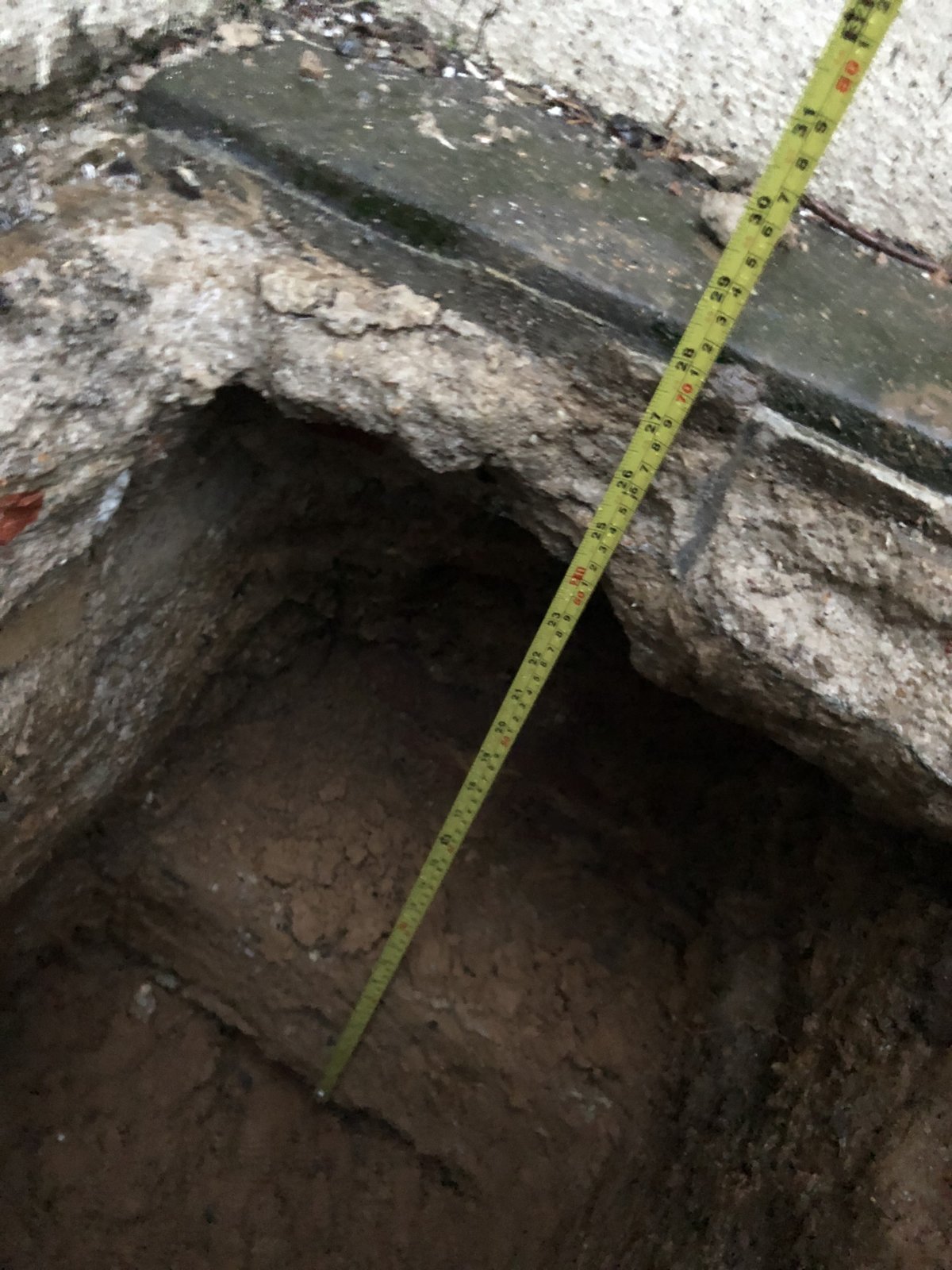 Ive attached a picture of the trial hole showing existing foundations. They are 70cm from ground level, 20cm thick. Therefore, I assume the job would be, to create a pad on top of the existing foundations which will make the top of the pads ground level (Thus not necessarily underpinning)