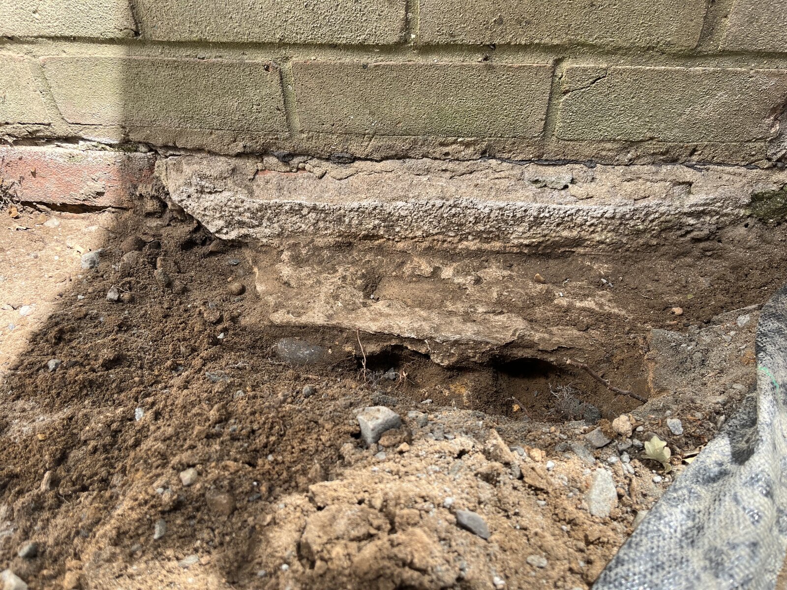 I would like to lay a new patio next to my garage and extension. I understand the finished level should be about 6 inches (two brick courses) below DPM but the ‘footings’ for my extension (3x3m masonary single skin monstrosity) seems to be only 1 course below DPM, and then itself is very thin.