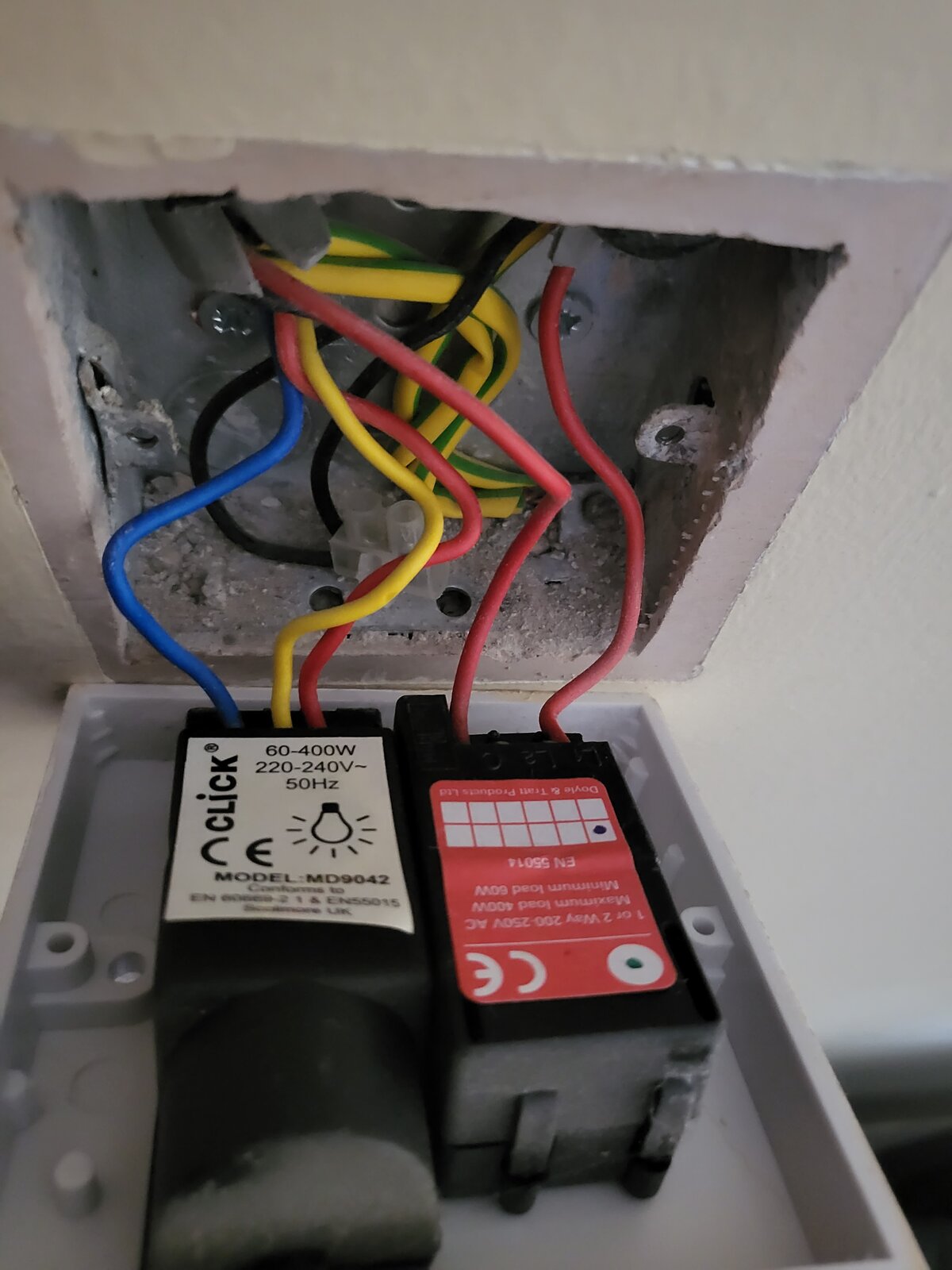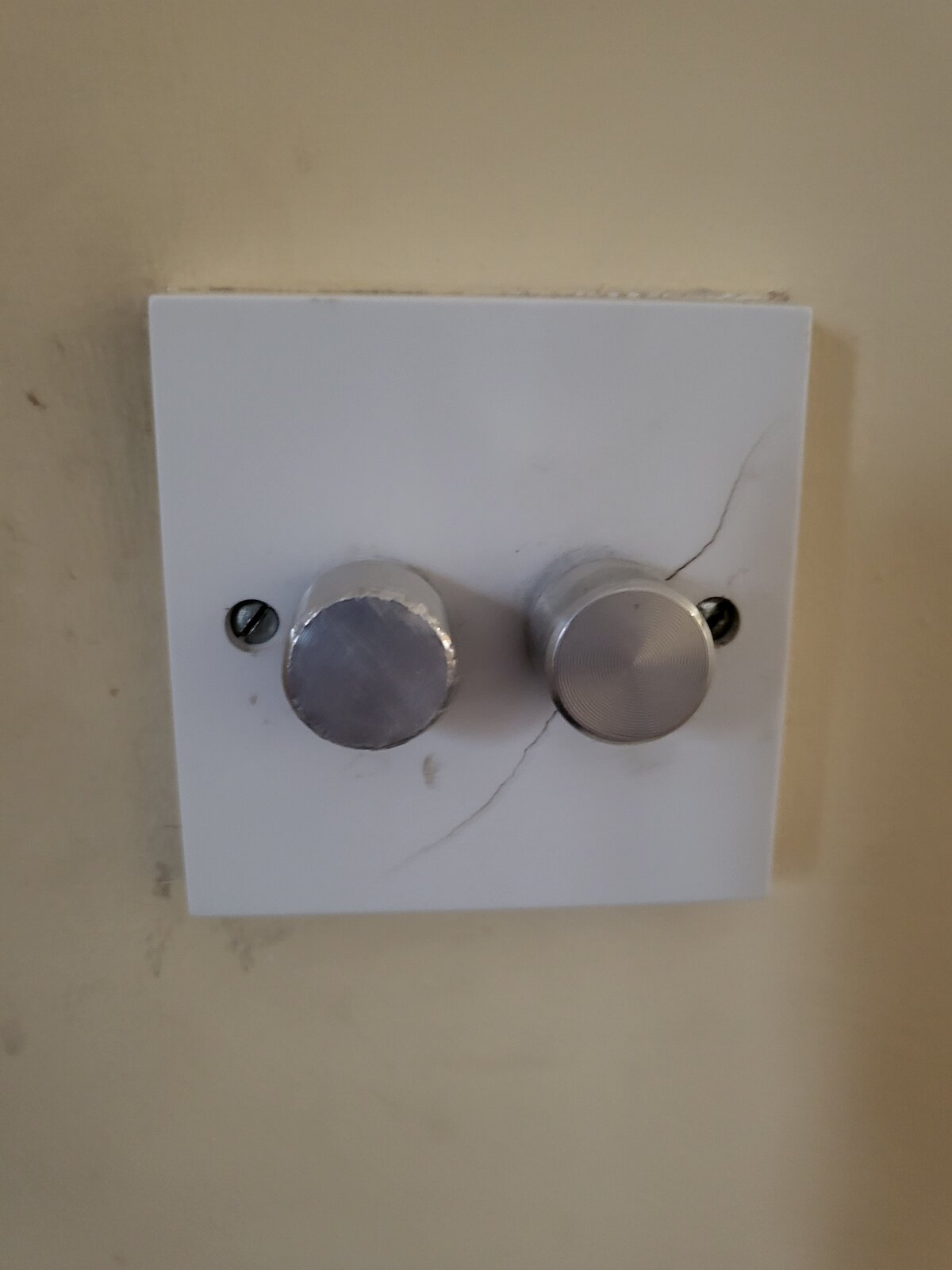 Hi, my mums dimmer switch has stopped working, its a 2 gang switch and only one is working now. The front is also cracked. Each switch controls 6 5W LEDs. I opened up expecting to be able to swap out with another switch but looks a bit different to what I was expecting...can anyone advise on what I need to buy to replace this and where can find them.