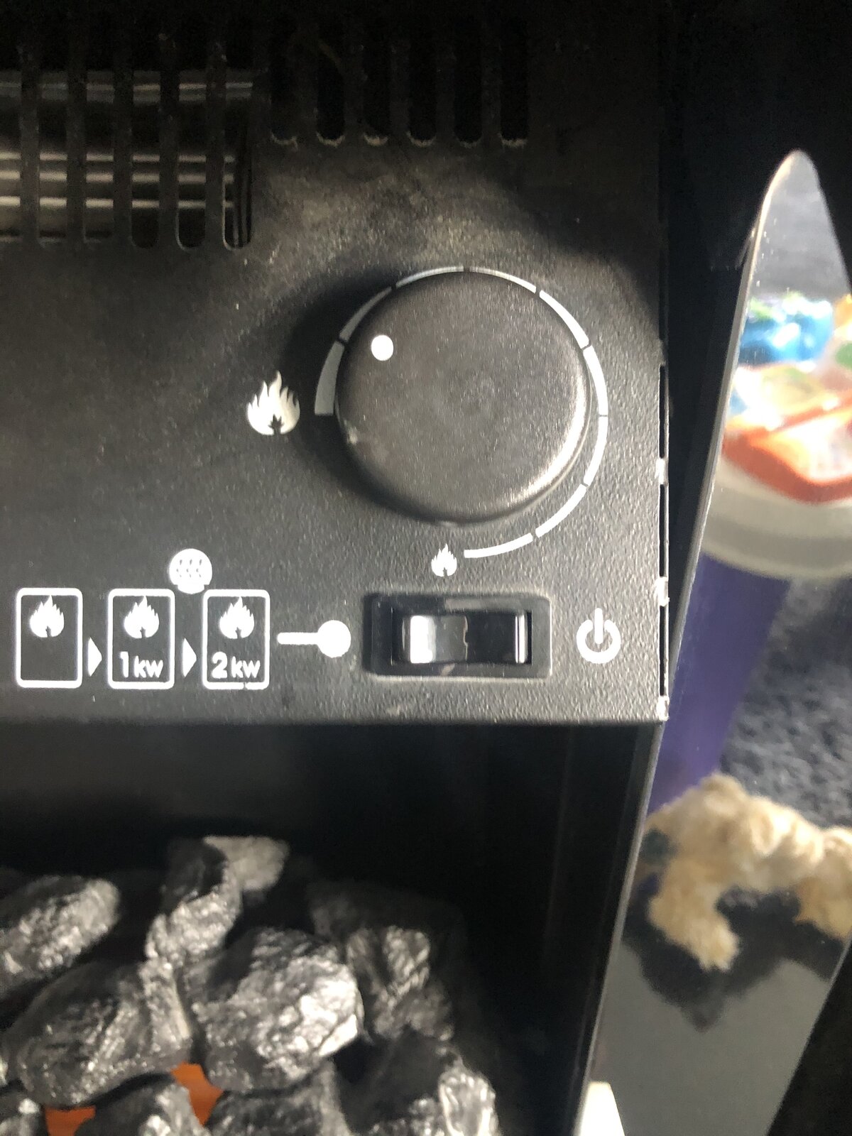 Its a potentiometer behind the black dial, shouldn't be an expensive part to replace, but it involves removing parts of the fire, so you'd need to be competent with electronics really and be careful, always remove the mains power before starting.It would appear my young lad has turned this dial to the point where it no longer works. He’s overturned it and would appear he’s snapped the switch inside which triggers it on. Anyone know if it can be fixed or would be looking at a full unit