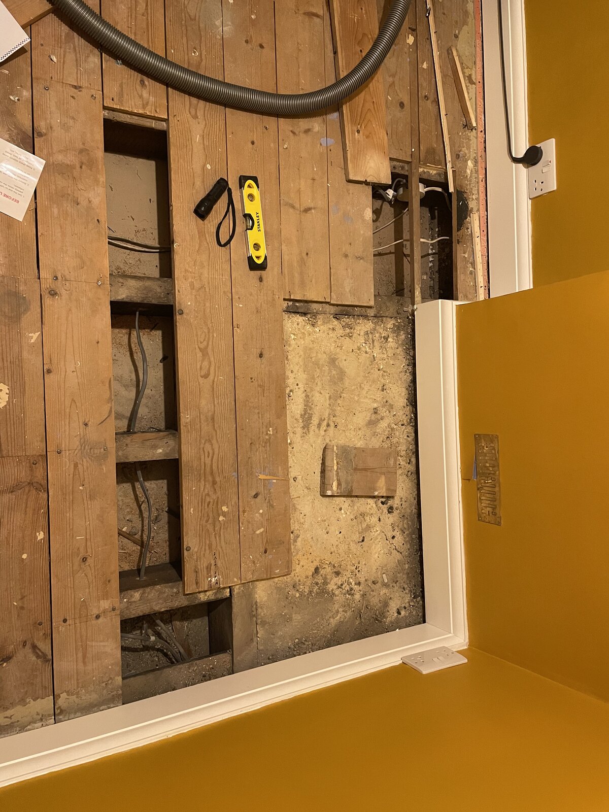 Edit: though actually looking at some of the original photos from my first post, looks like there is a second small dip later on in the room? Nowhere near as large.