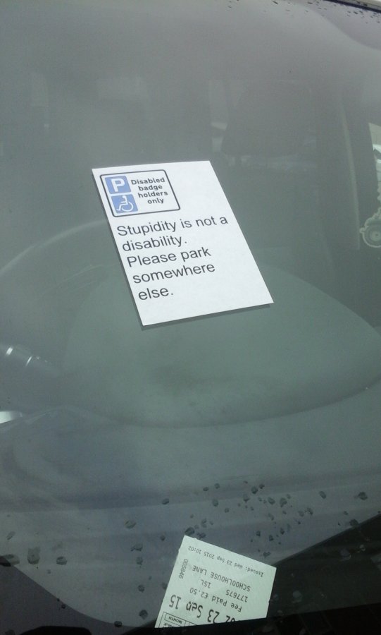 Where can I get some? Being a carer for a disabled person can be so frustrating when you need to take them somewhere and come across this type of selfish idiot.