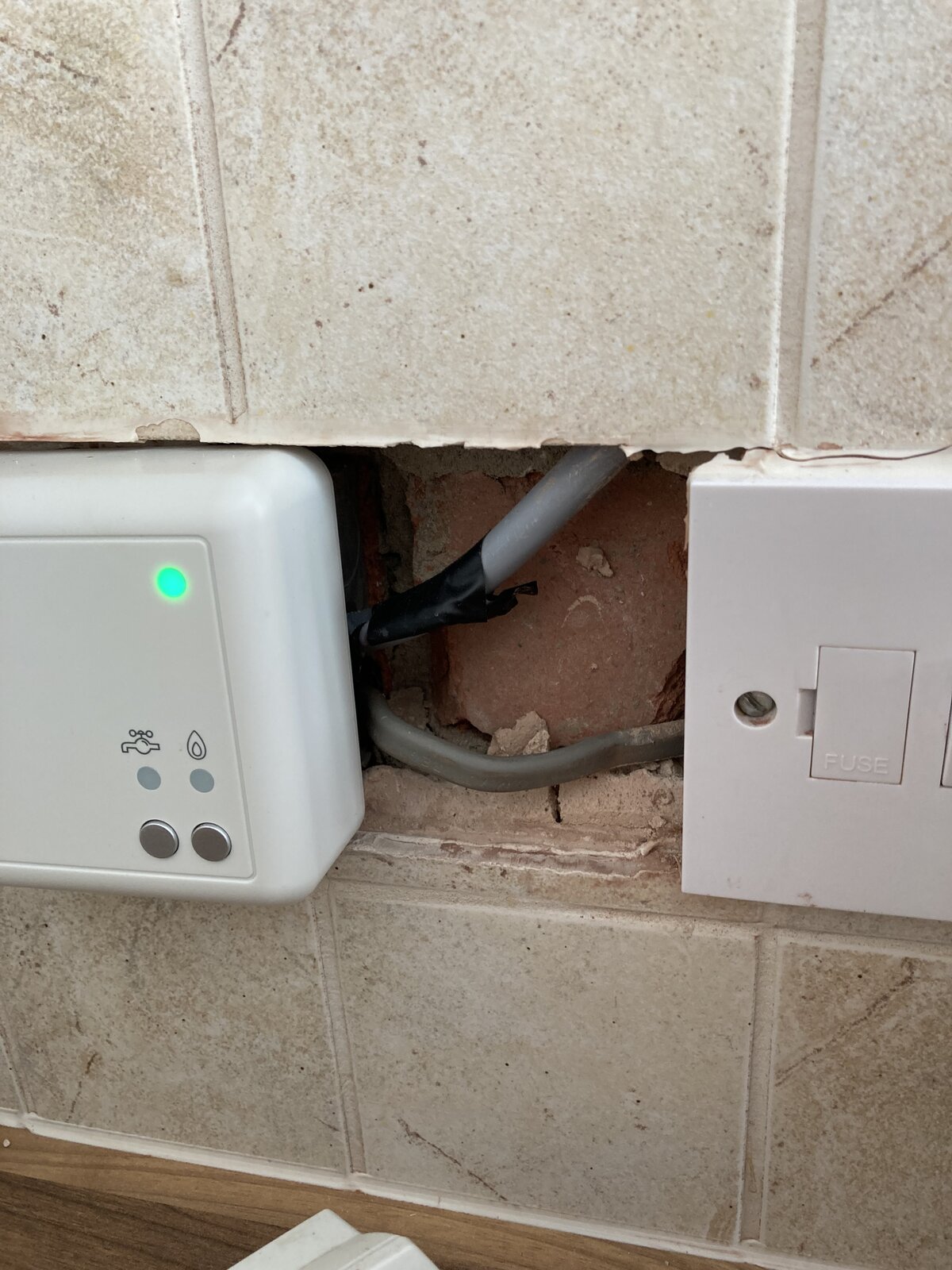 current wiring has two thick grey cables running to the receiver, with two live, neutral and earth cables running into ports 1 & 2. Can I assume this cable is for the old thermostat? It disappears into the ceiling but doesn’t enter the boiler junction box.