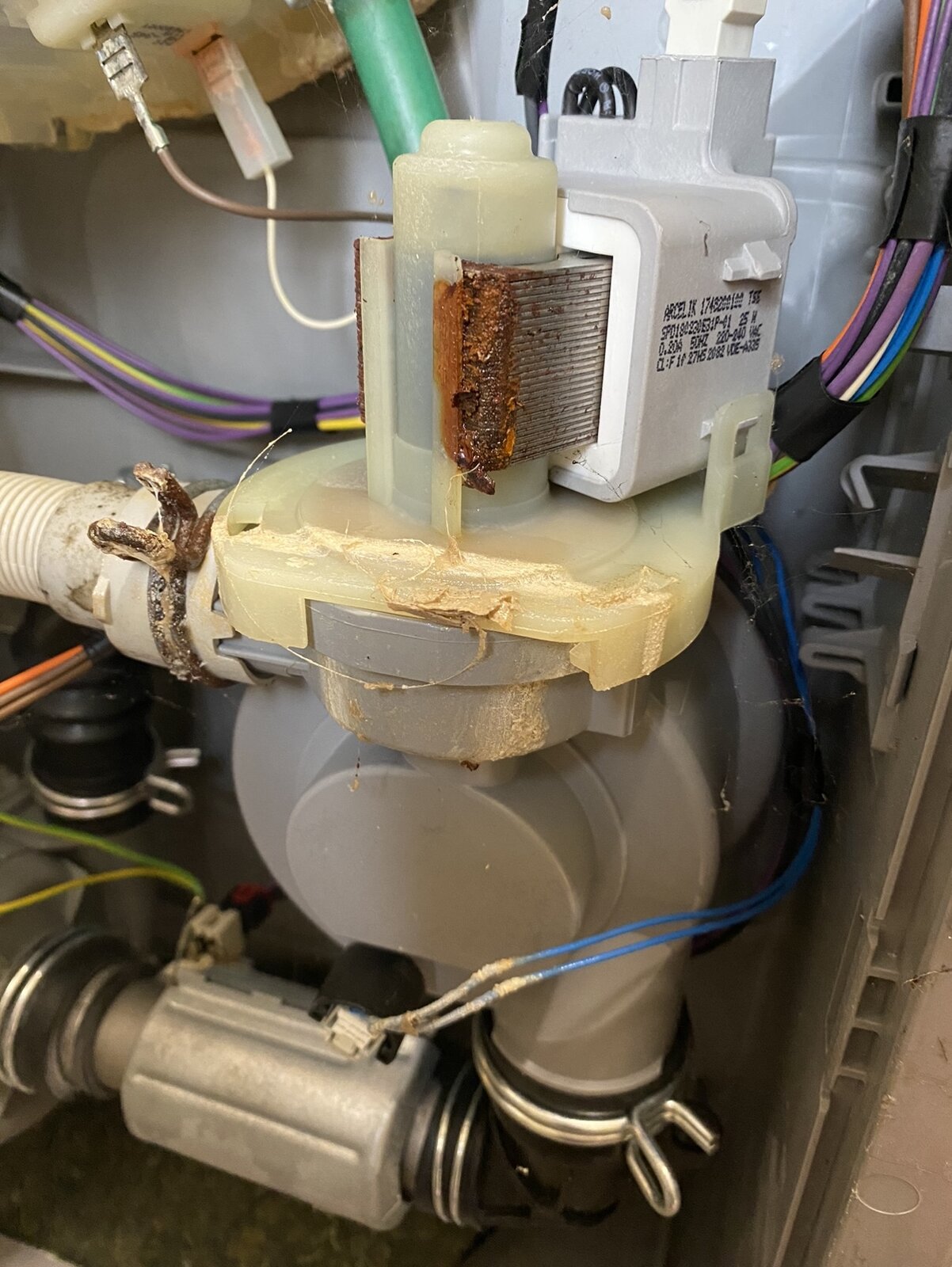 Hi I have a Beko Dishwasher. It’s about three years ago and it really hasn’t worked since I got it. Every time it powers in, does the wash cycle and when it gets to the drain cycle it blows the fuse in the box. Today I’ve laid it on its side and got the bottom panel off and the insulation blanket at the bottom is wet, the side one is dry. And there is rust on the motor and pump. The pump feels wet to touch. I can’t work out where the leak is coming from. Will I need a new pump and motor and how can I see where it’s leaking from? If I need a new motor and pump it would be about the same cost as a new machine. Thank you for any help.