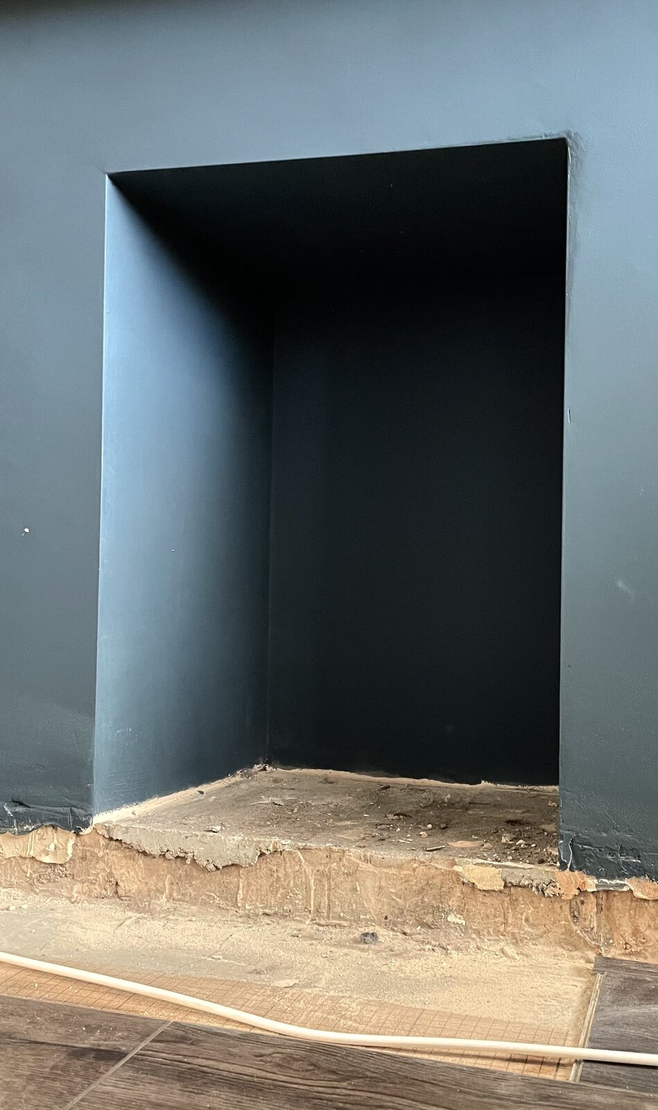 Hi all. I am wanting to make my own hearth - purely decorative, not for a burner. Has anyone made one before? I was thinking laying some tiles over paving slabs. The height of the concrete floor to the lip of the recess is 70mm so would probably have to stack 2/3 slabs on top of one another (stretcher bond). Ideally, I would have lowered the base of the recess but it would mean having to get it all re-skimmed at the bottom.