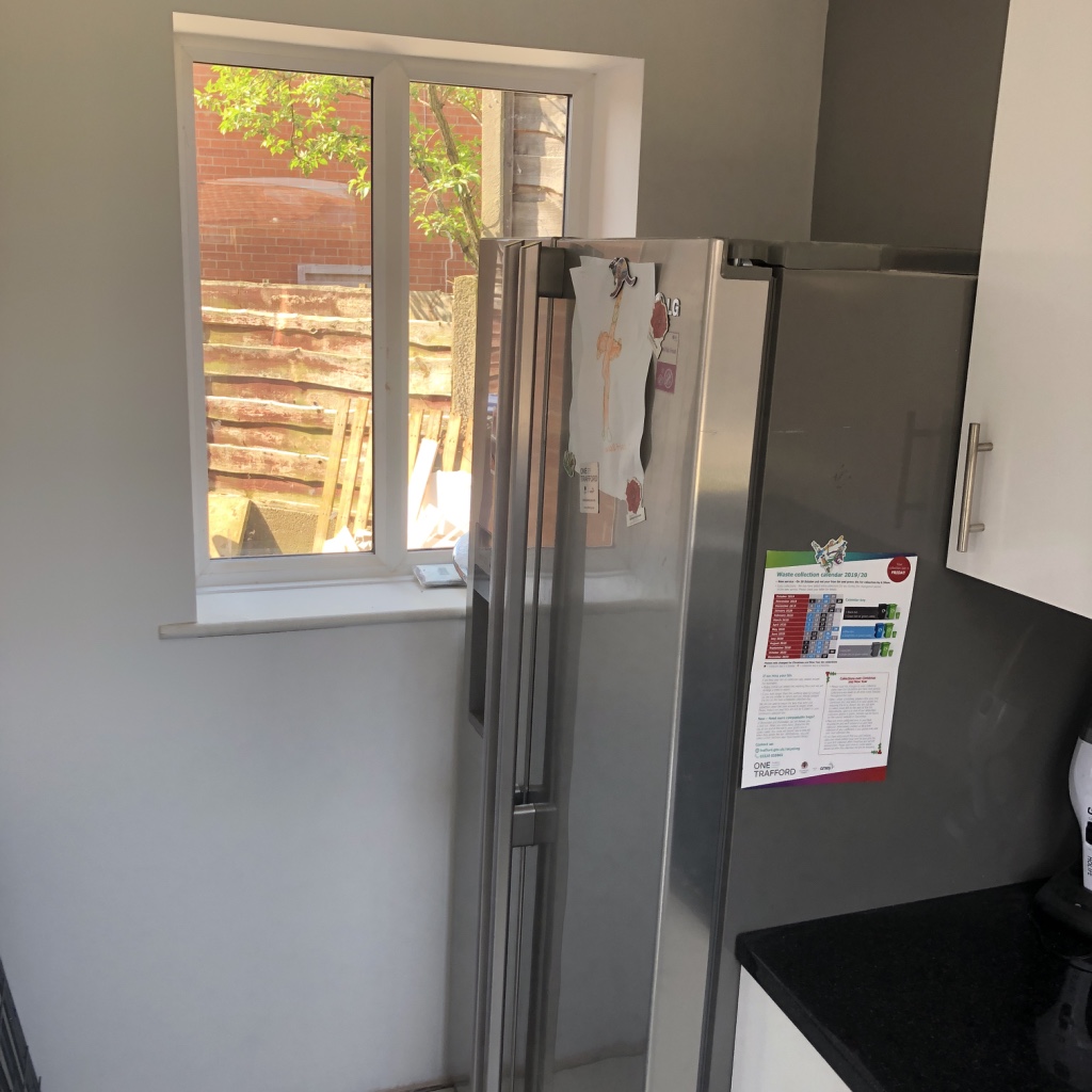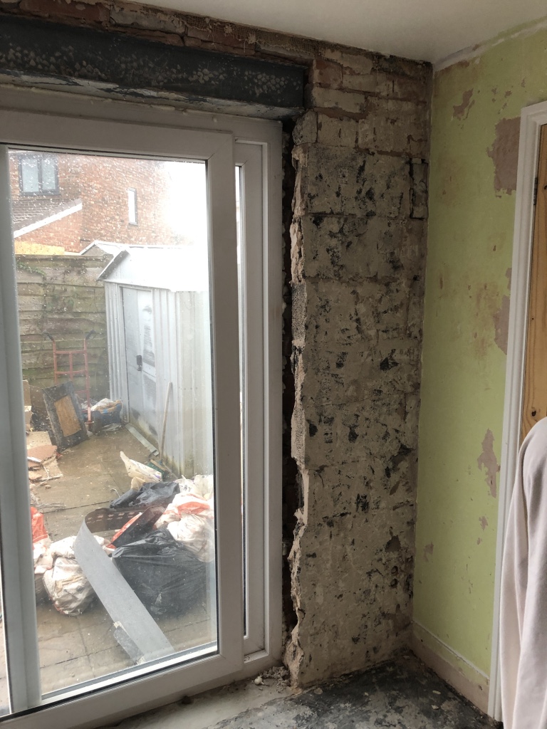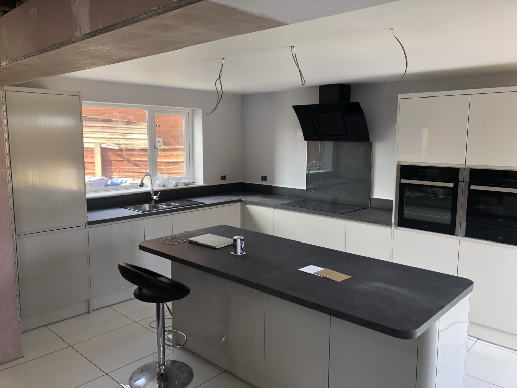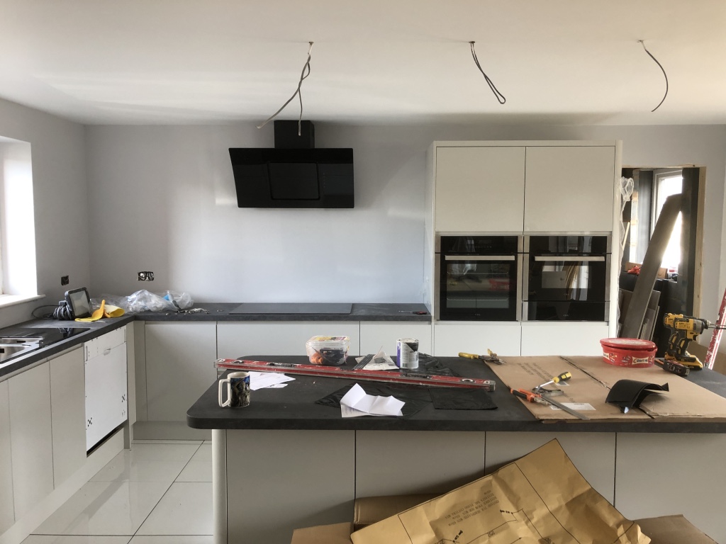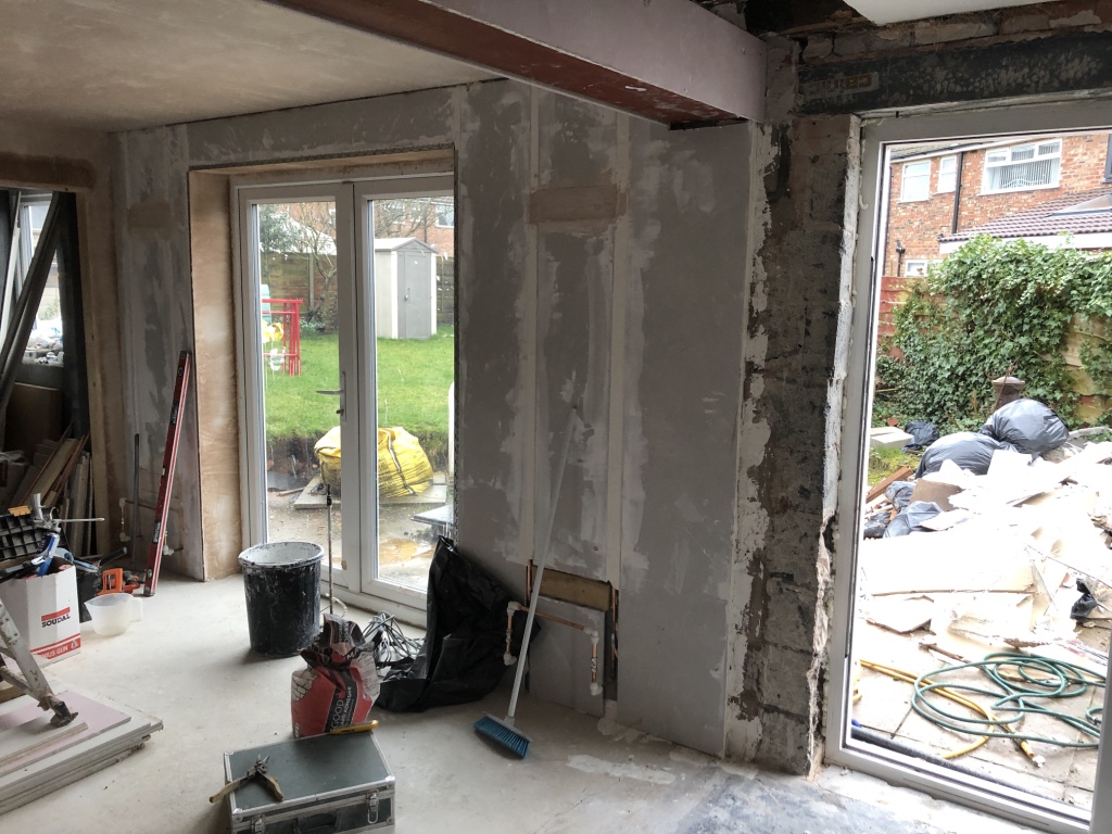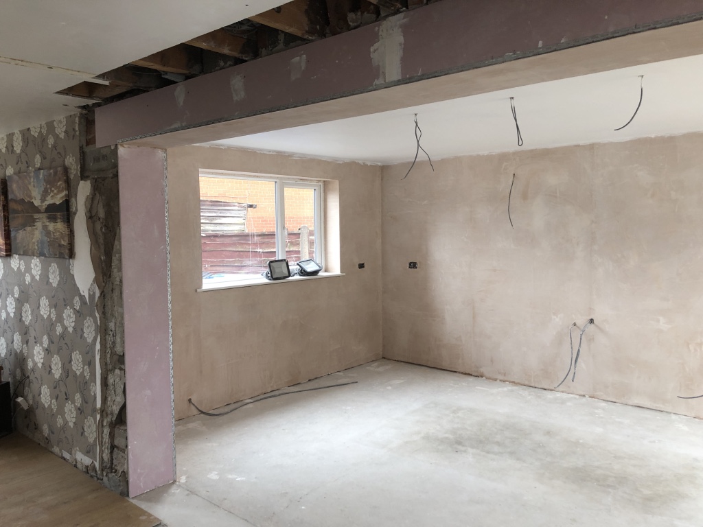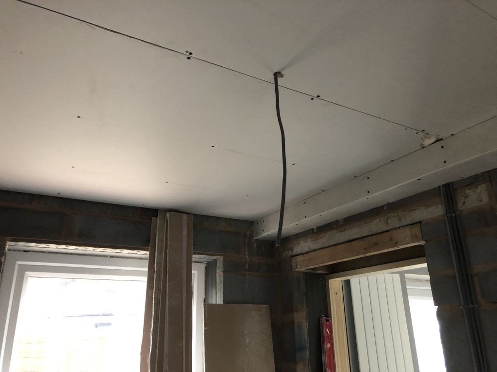 When it came to plastering the kitchen ceiling I did things a little different. I split the ceiling into three sections using some angle beads and just plastered the first section.
