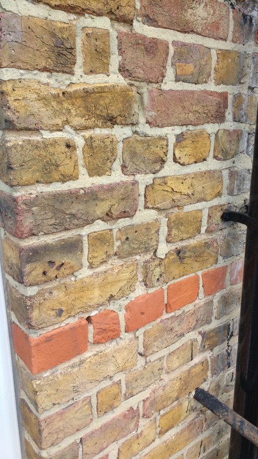I have a third-floor Victorian flat (circa. 1900) and I have always assumed that it had solid walls, however the walls are 15.5" thick. The brick pattern doesn't help as the wall is so thick you would expect to see the ends of the bricks as well as sides, see below.