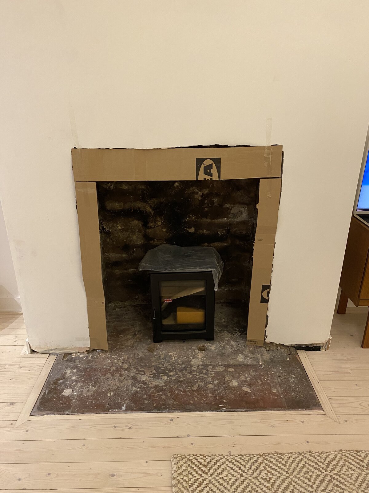 I have scoured the building regulations (scotland) and cannot find anything saying that a hearth must be raised (in relation to surrounding floor). Yes it must be distinct etc but does it have to be raised?? I have been told by various people that it does. You can see that it is currently flush.