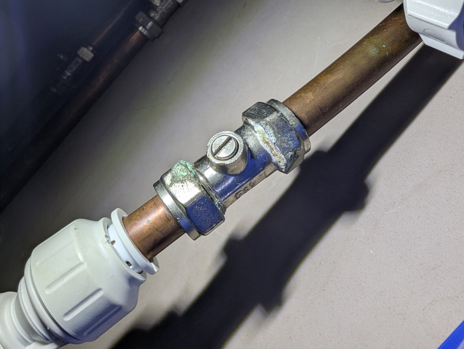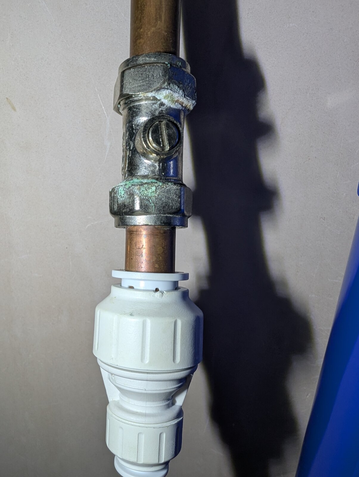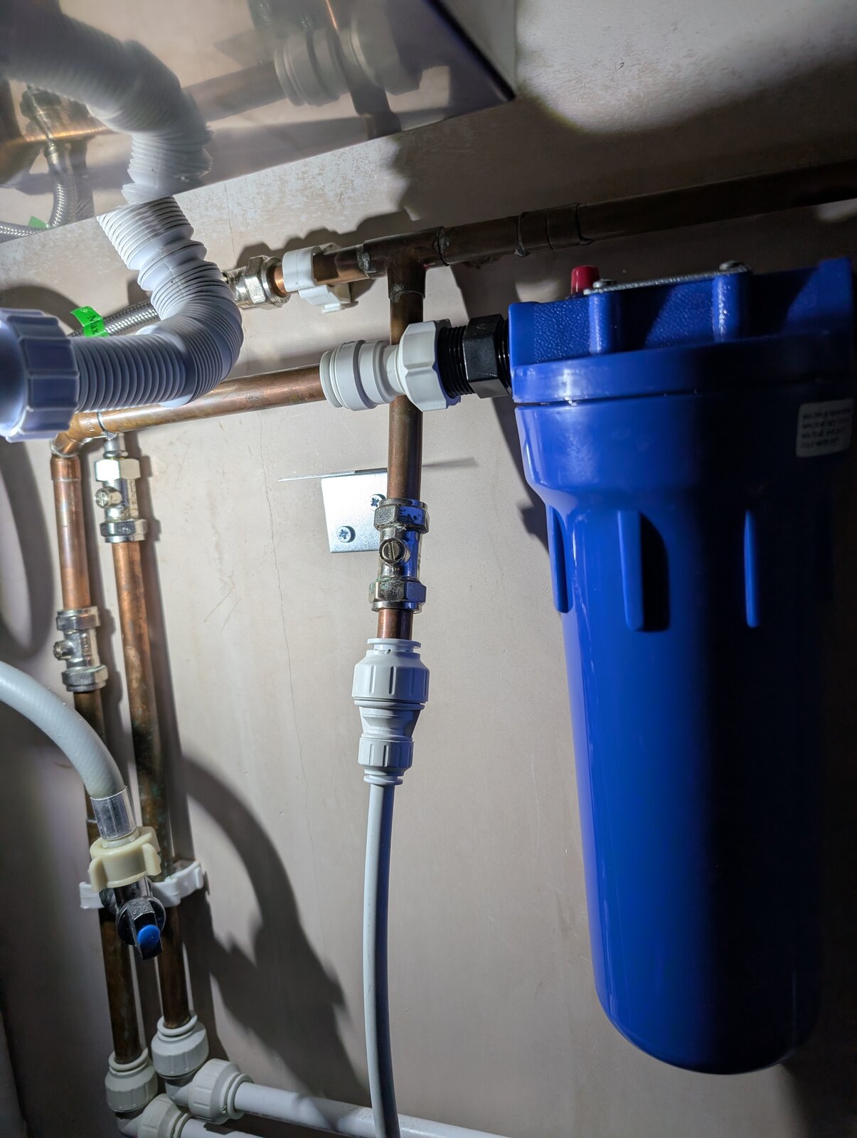 I was planning to remove the 2 pushfits connecting the blue filter and put 2x jg speed fit 15mm couplers with some plastic or copper pipe between to patch where the filter was.