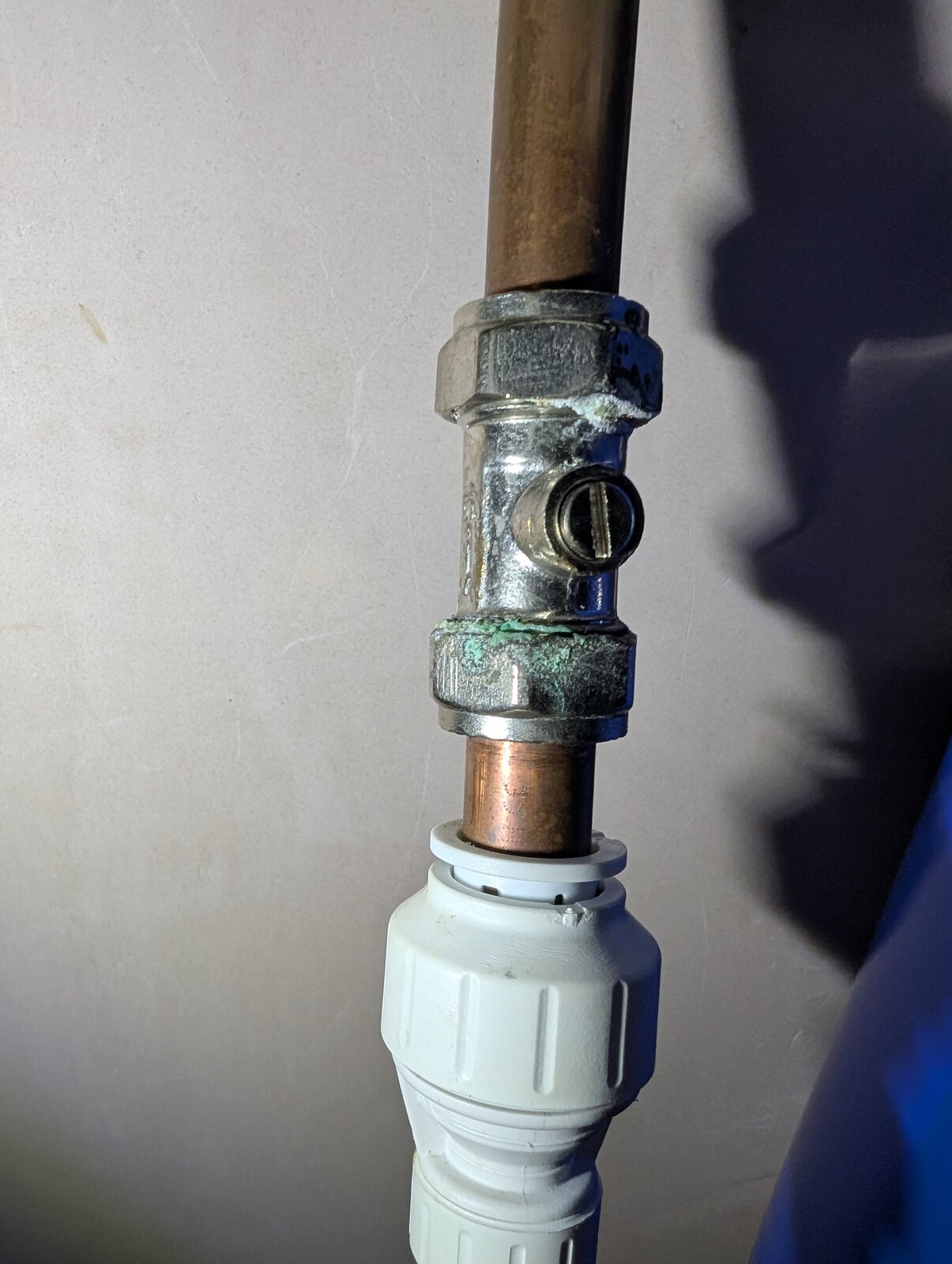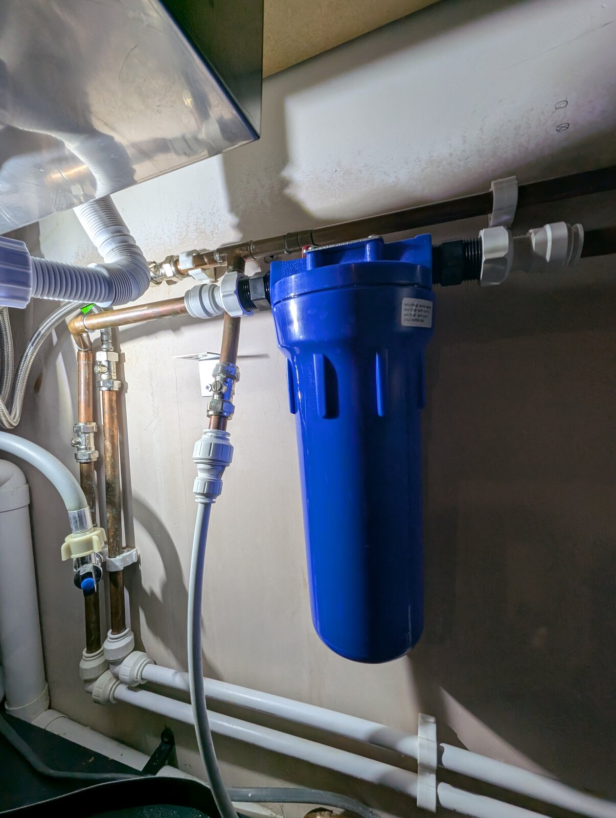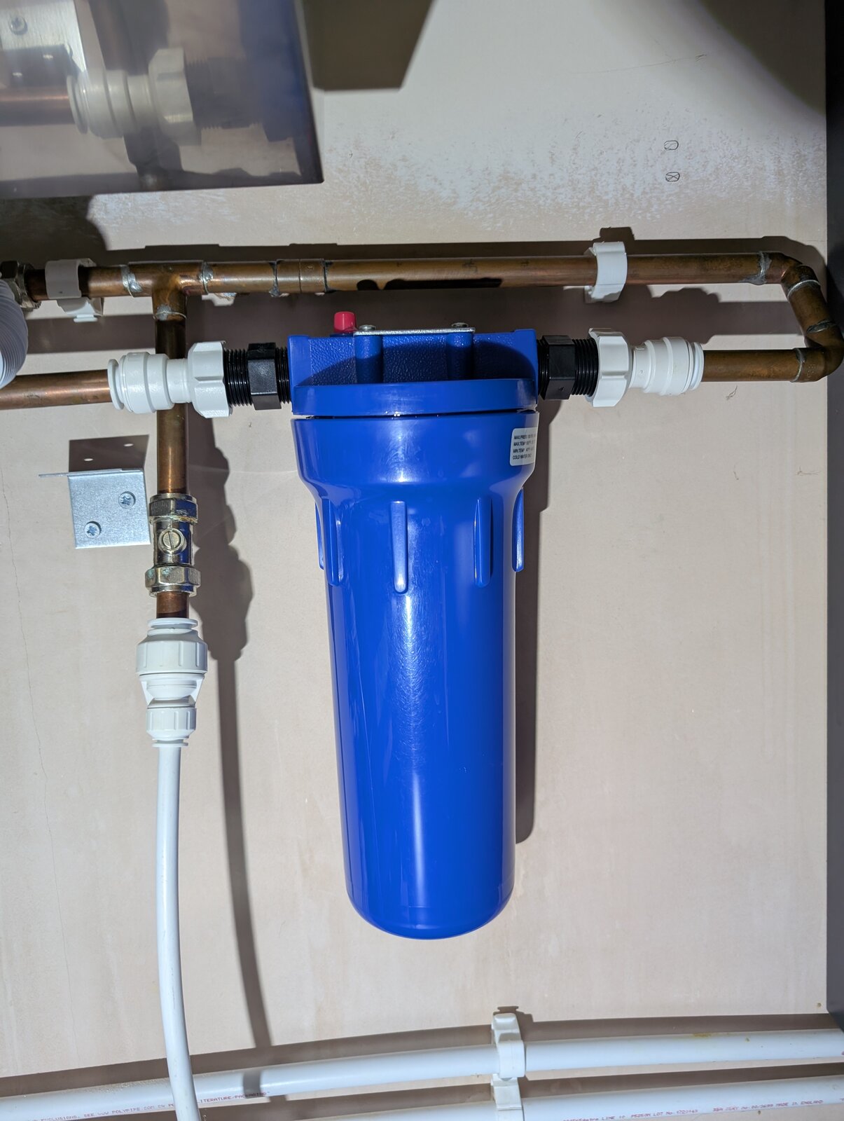 I was planning to remove the 2 pushfits connecting the blue filter and put 2x jg speed fit 15mm couplers with some plastic or copper pipe between to patch where the filter was.