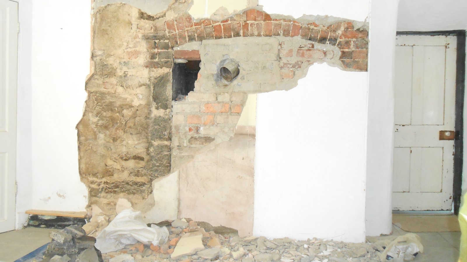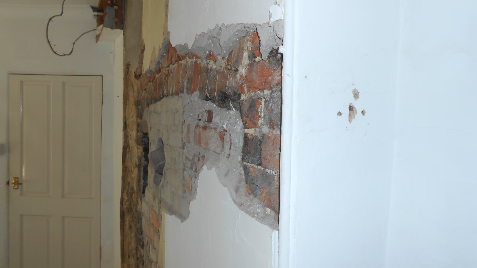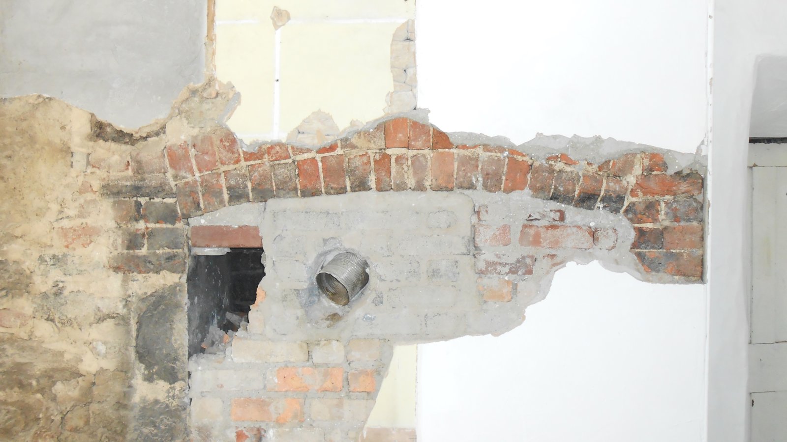 I'm concerned because that brick arch seems very flat, and also there's very little wall on the right hand side to stop it pushing outwards once we've taken the bricking up out of the middle.