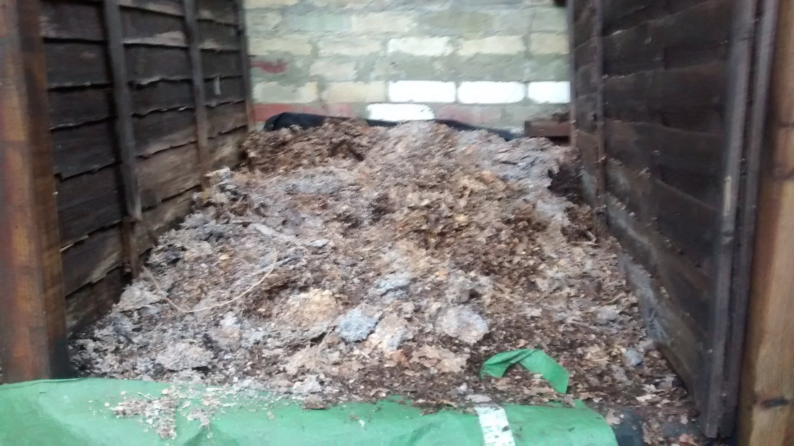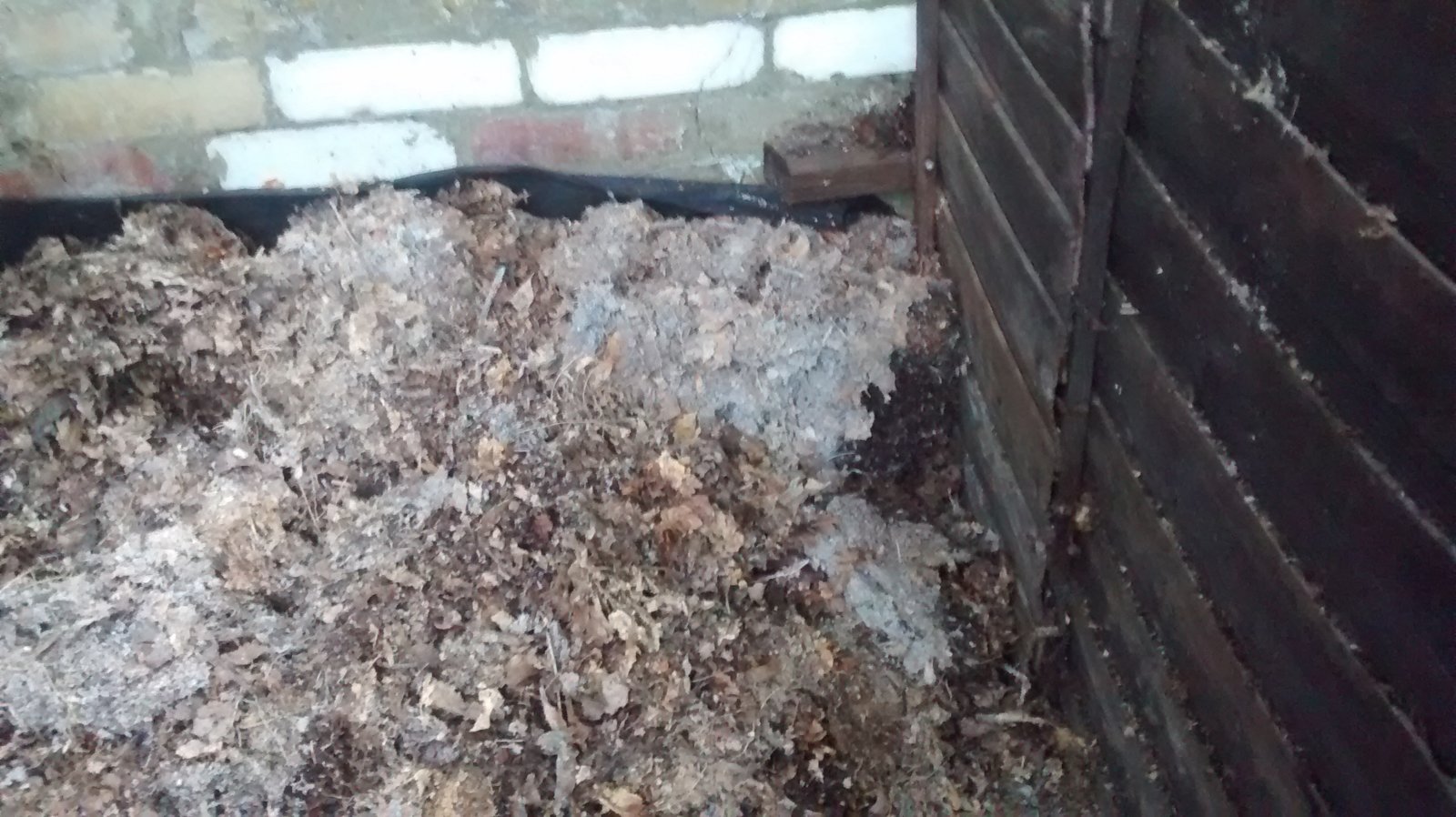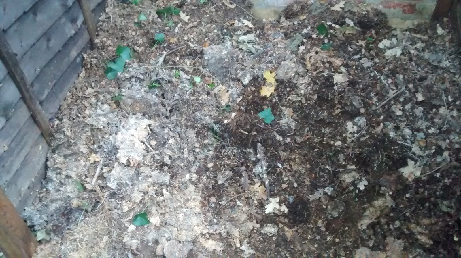 However once I had started moving it to the middle (medium) bin, I saw that a lot of it was dry, it was in layers like leaves that have just been compressed together (rather than broken down) and in places it has something that looks like mould on it.