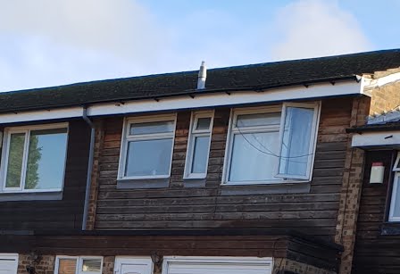 There is a big patch of damp just above the flat roof that can be seen on the right.