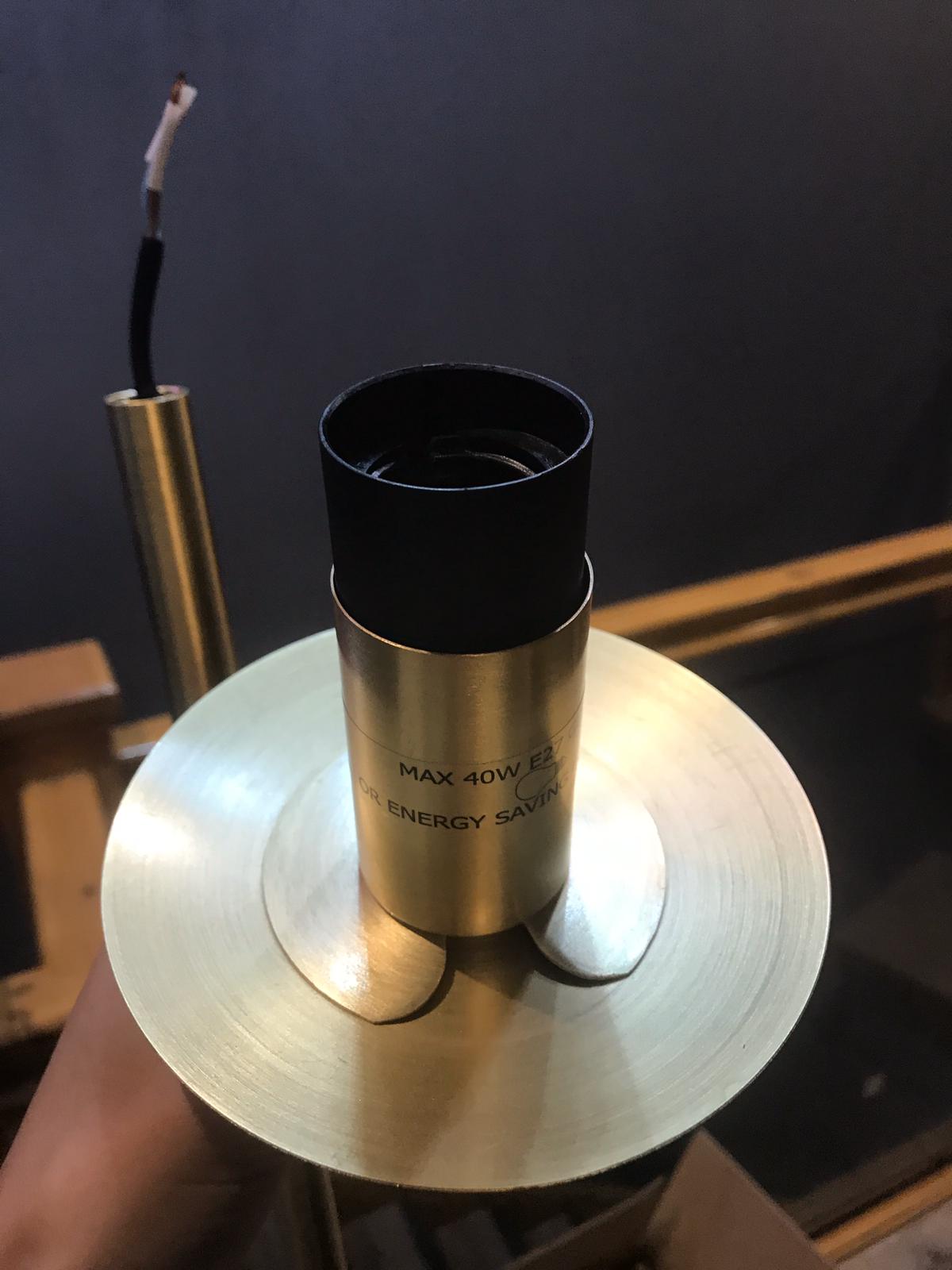 Standard lamp is fed by 2 core flex through metal tube seen in background. The bulbholder is plastic so question is should it be earthed. Item bought from Homesense.