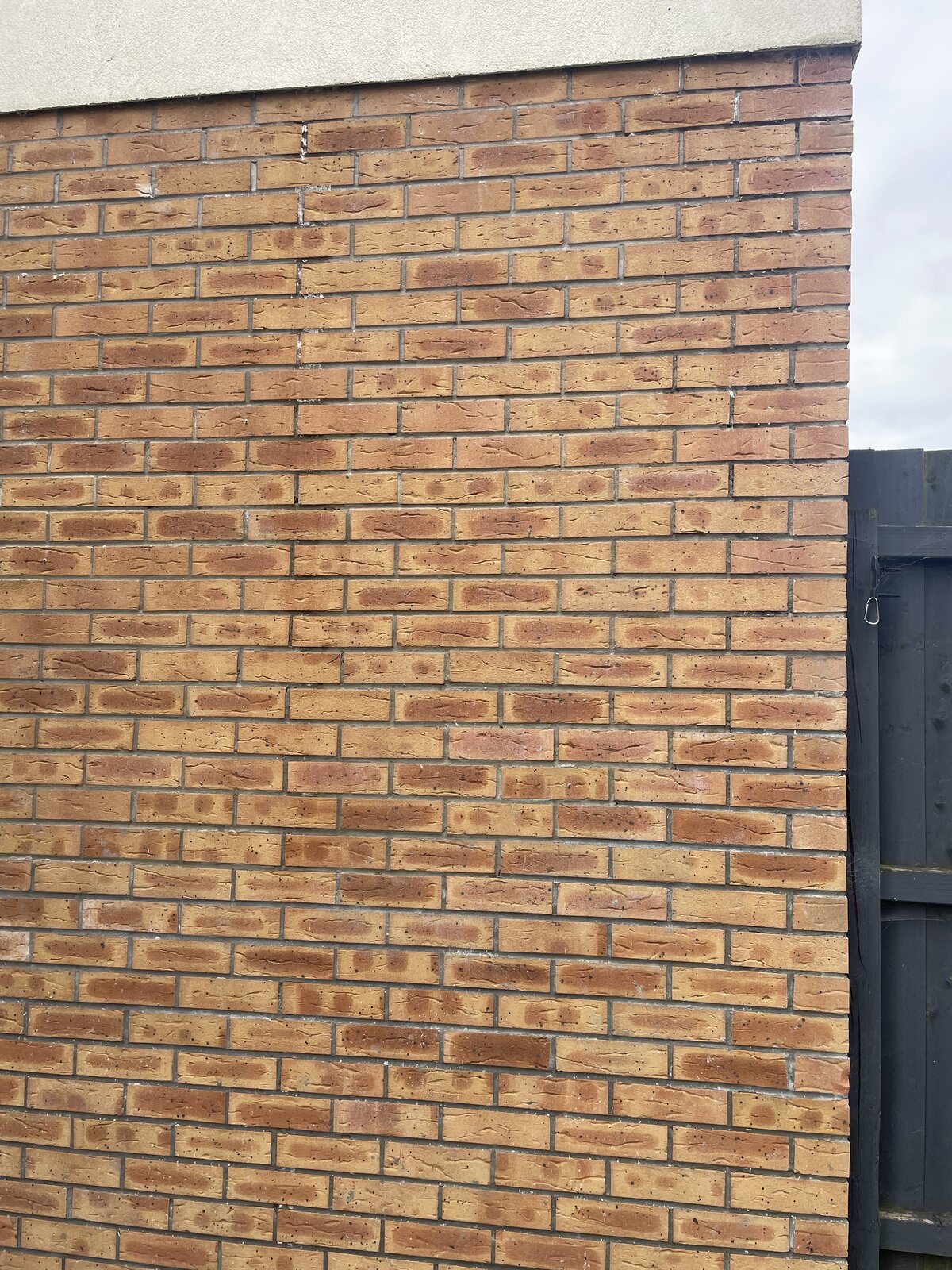 I just had a look around the side of my house that faces into my neighbours garden, as there was some dodgy looking mortar on the corner of the wall that I could see from my garden. I’m not really sure what I’m looking at , but the top right part of this wall looks a bit washed out, and there is a weird dark line down the centre of the wall with a bit of white efflorescence . Is there anything here that needs attention? The first photo is from my garden, the rest are of the side of my house from the neighbours garden (houses are staggered). There's also a hole that might be a weep vent ? Not sure what it is.