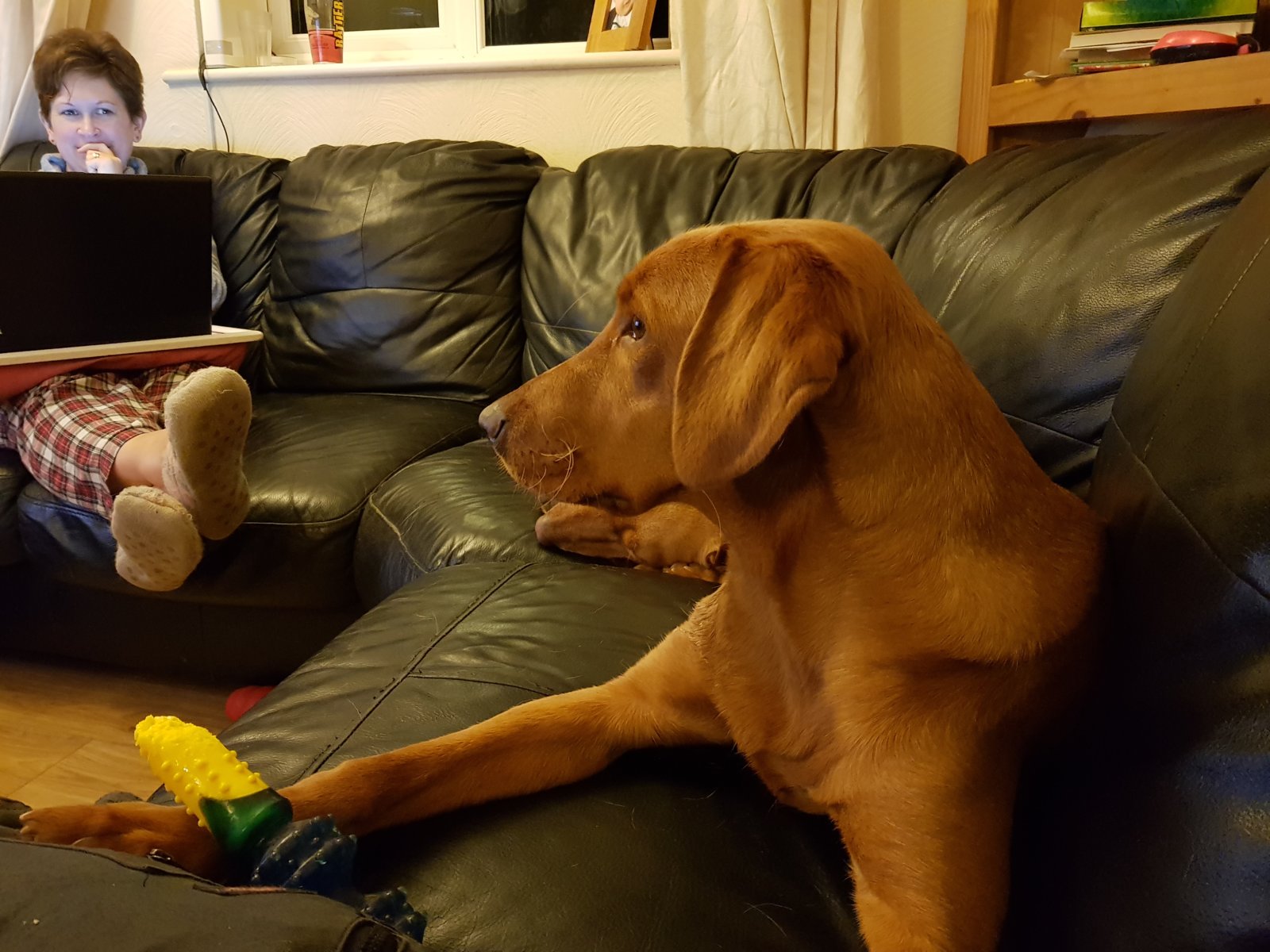 this is another Fox Red Lab, our Gracie, 3 1/4, oldest puppy on the park. Deffo not as bright as our old black girl, but a whole load more grand-daughter friendly....This is out pup, she's jusy turned 5 months old.