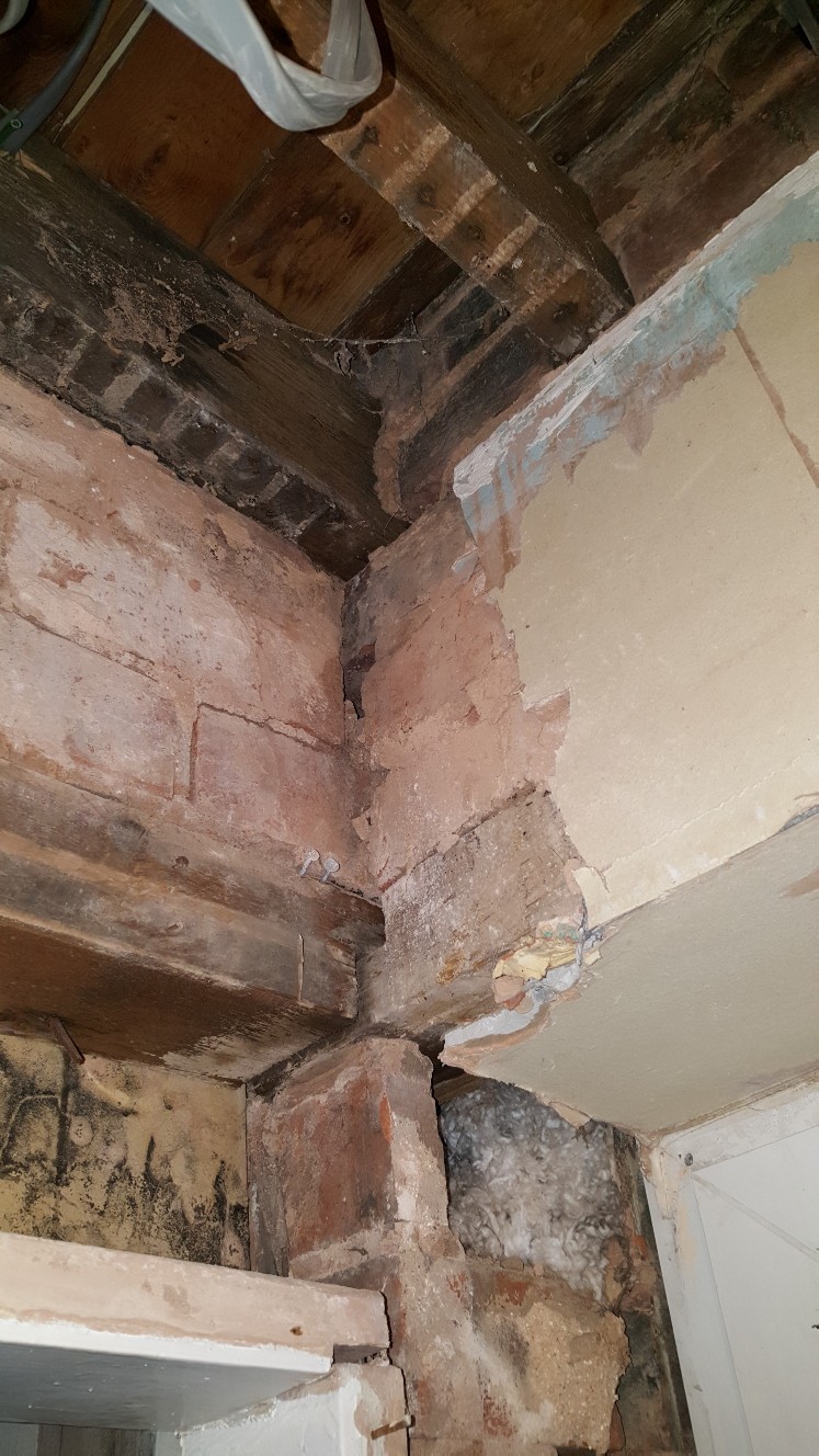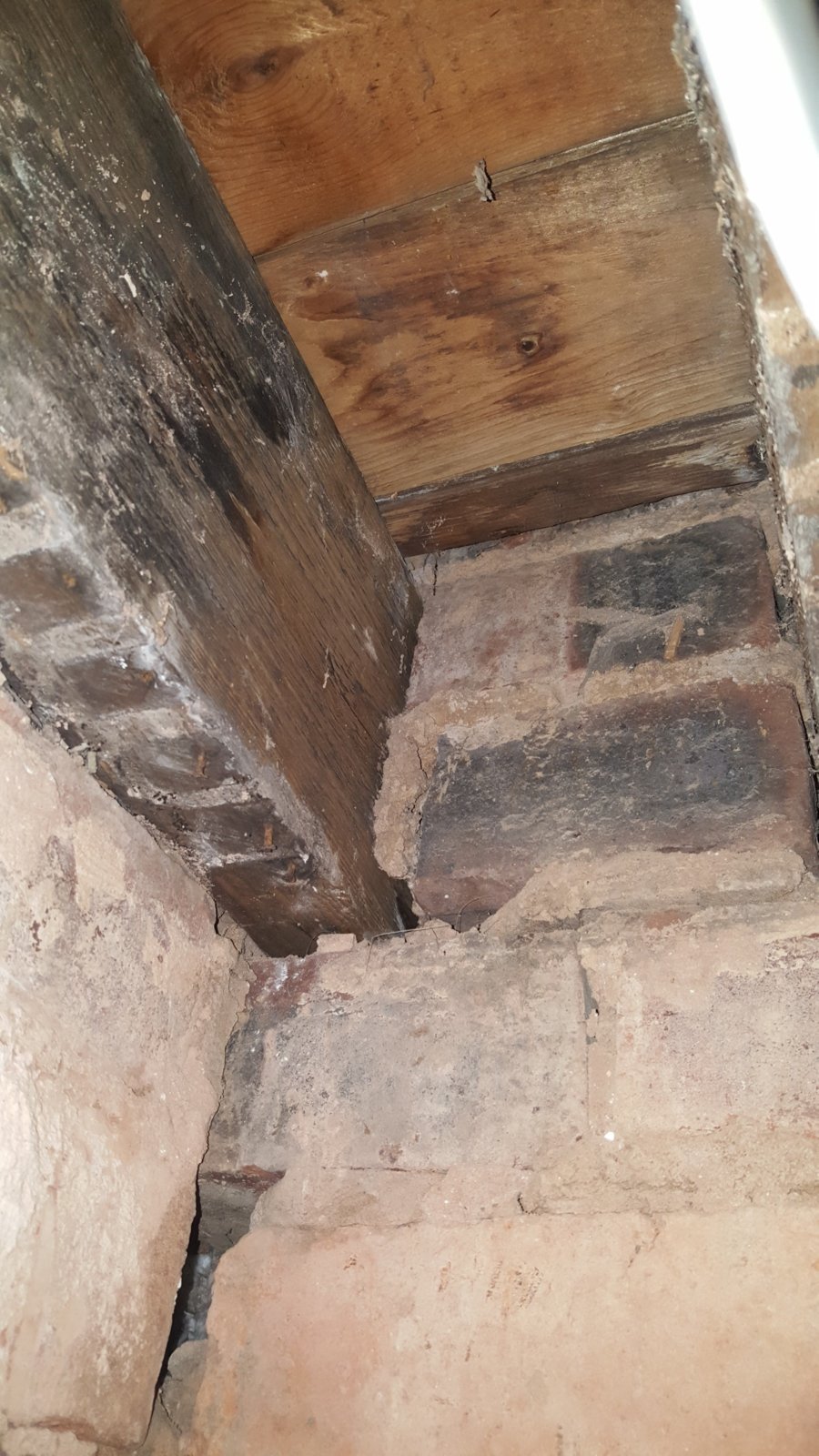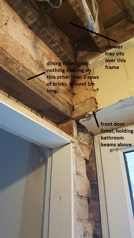 Another thing i have spotted is a beam supporting a row of bricks and possibly the entire bathroom floor seems to re resting on a quarter of a brick. I need to look further into this as there may be a support higher up.