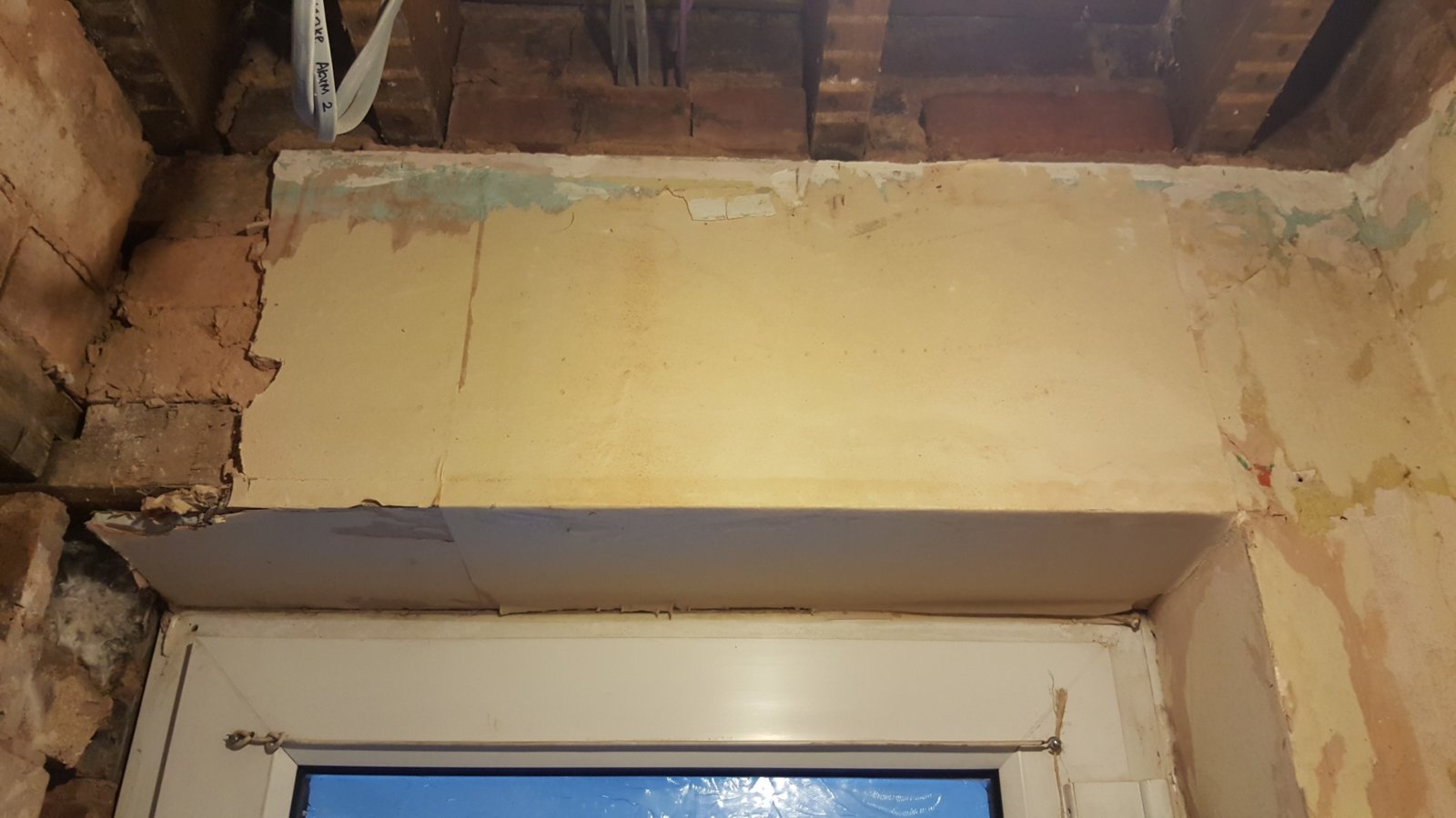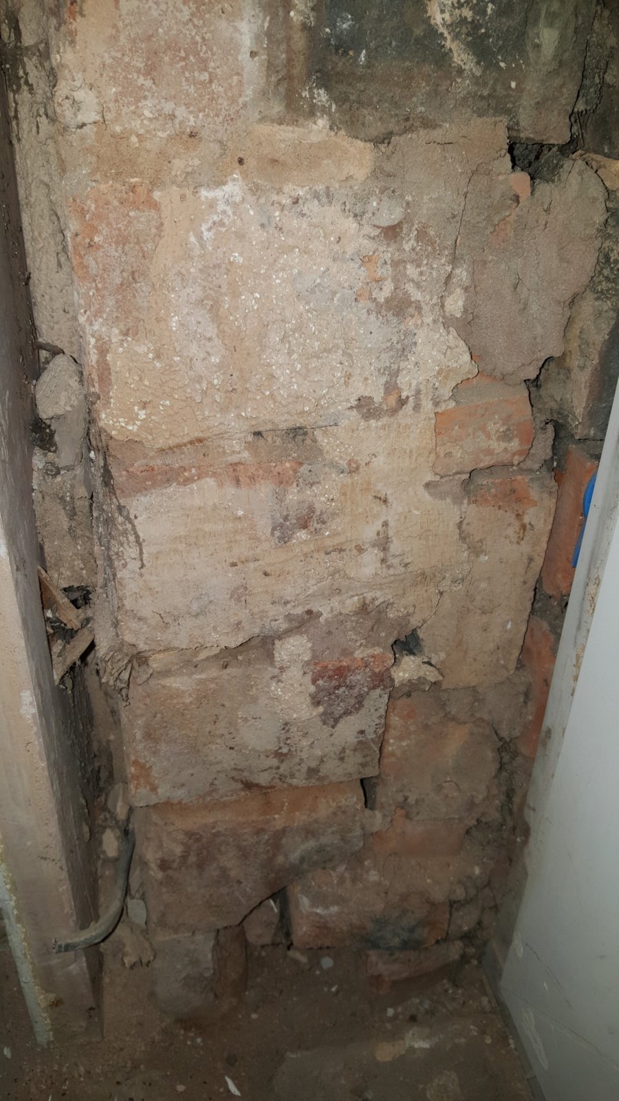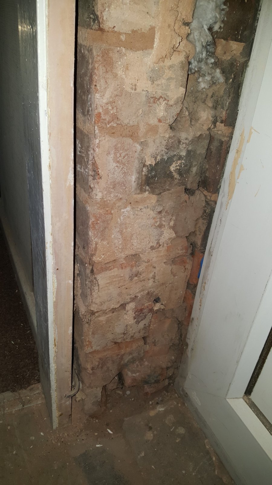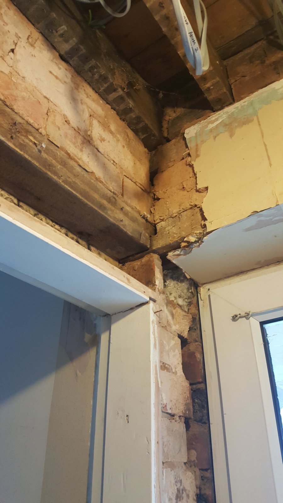 The living room door is situated next to the front door. Upon removing old plaster some issues have been found. Pictures are attached.