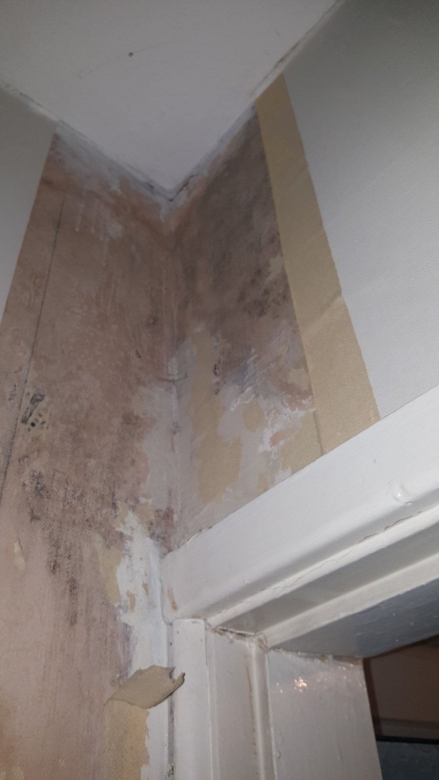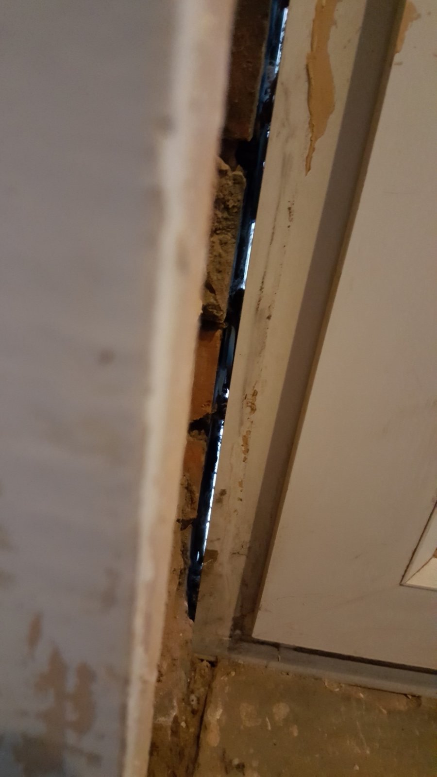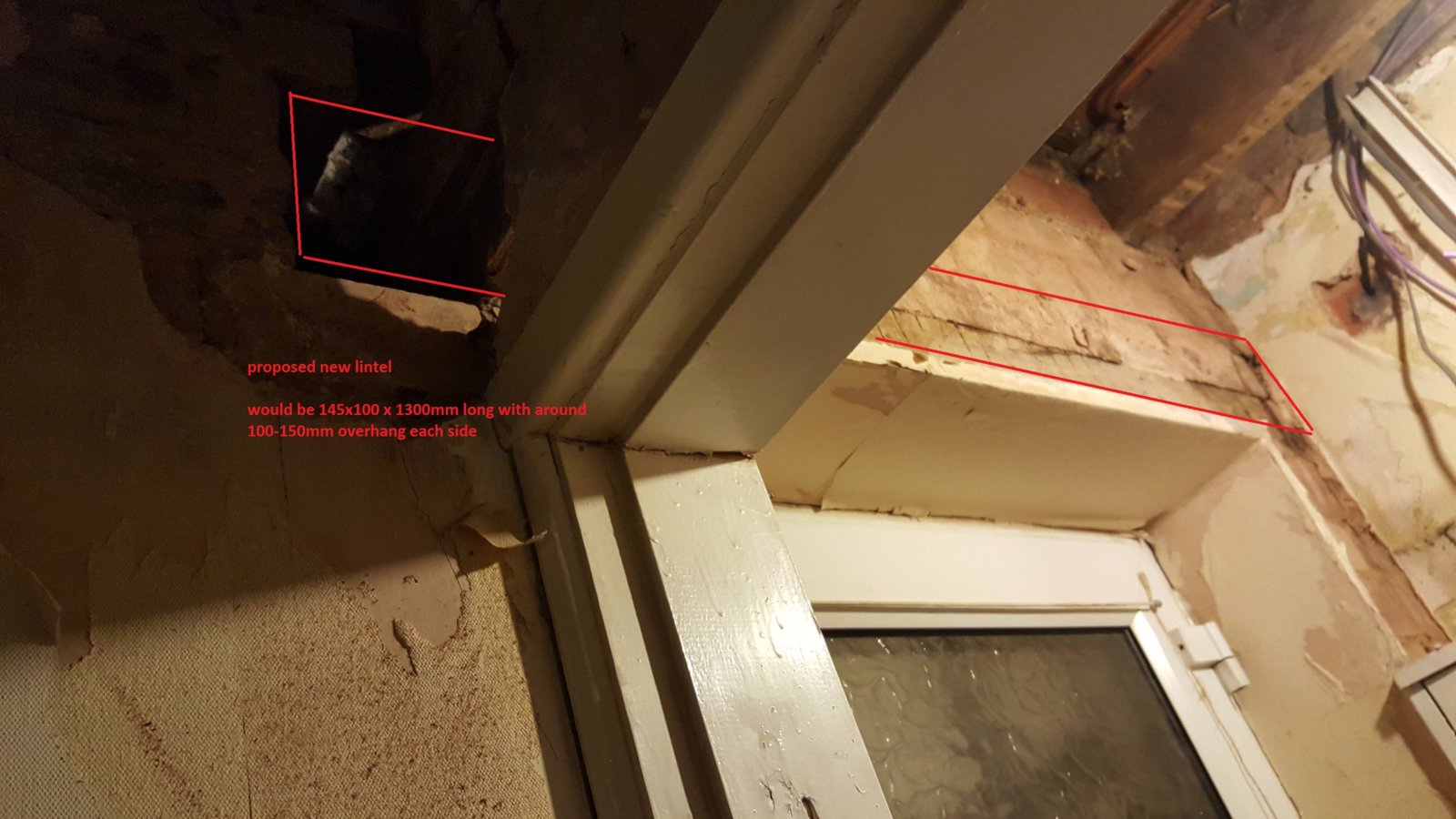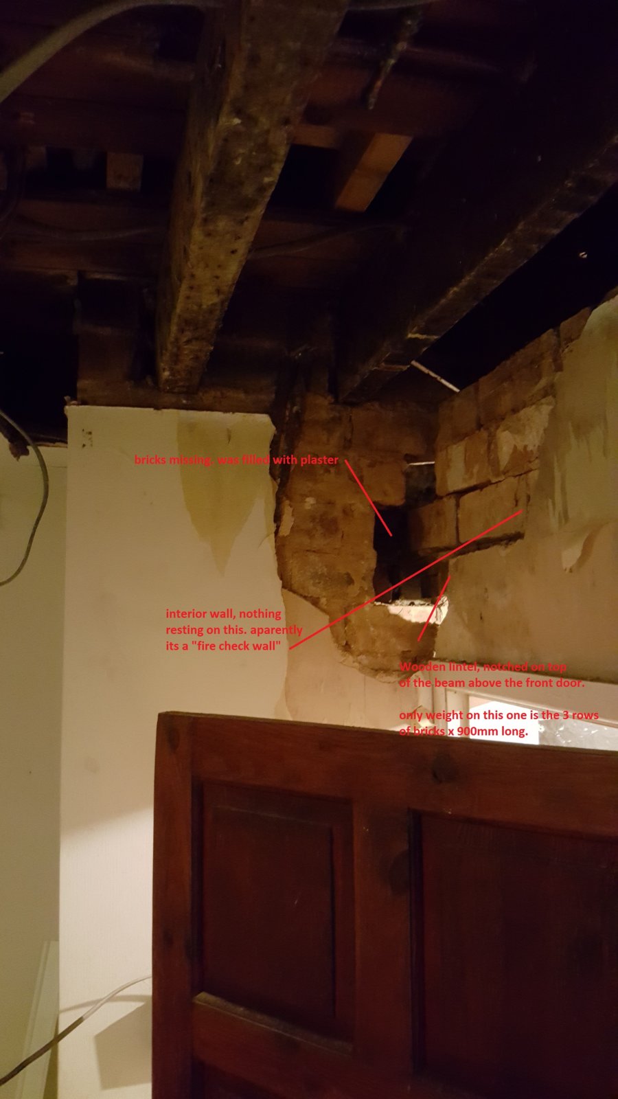 The living room door is situated next to the front door. Upon removing old plaster some issues have been found. Pictures are attached.
