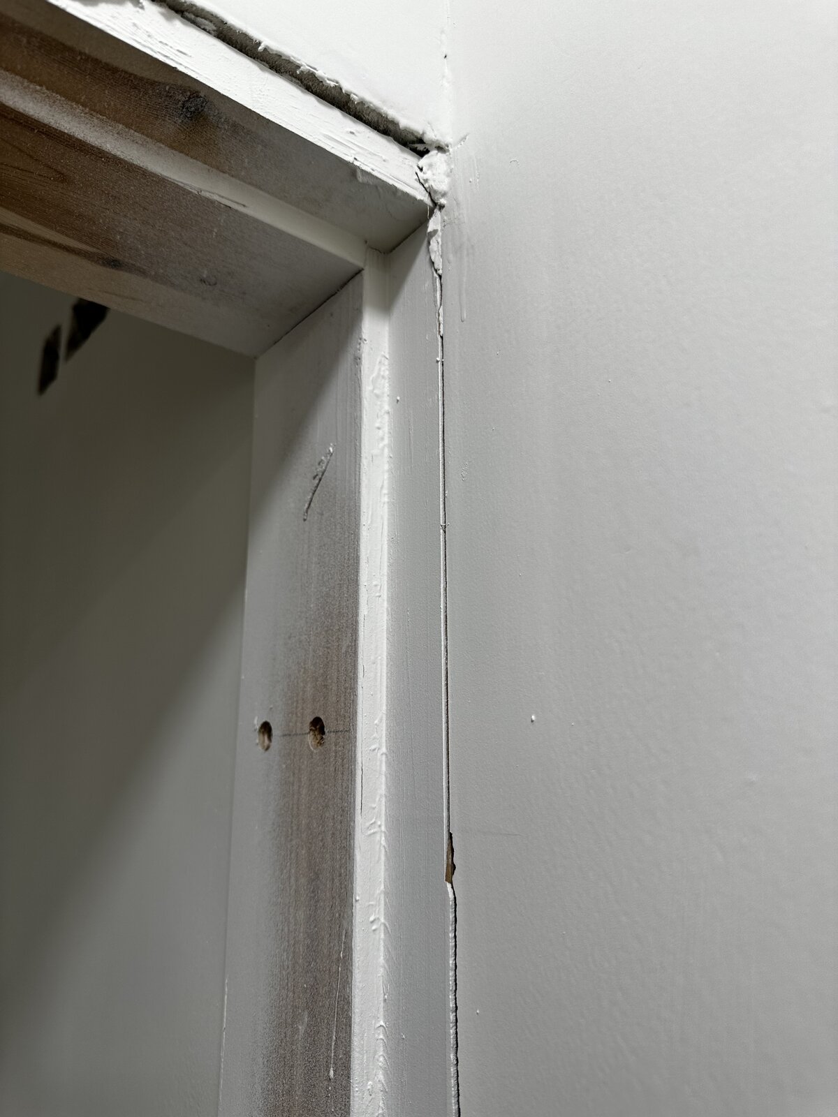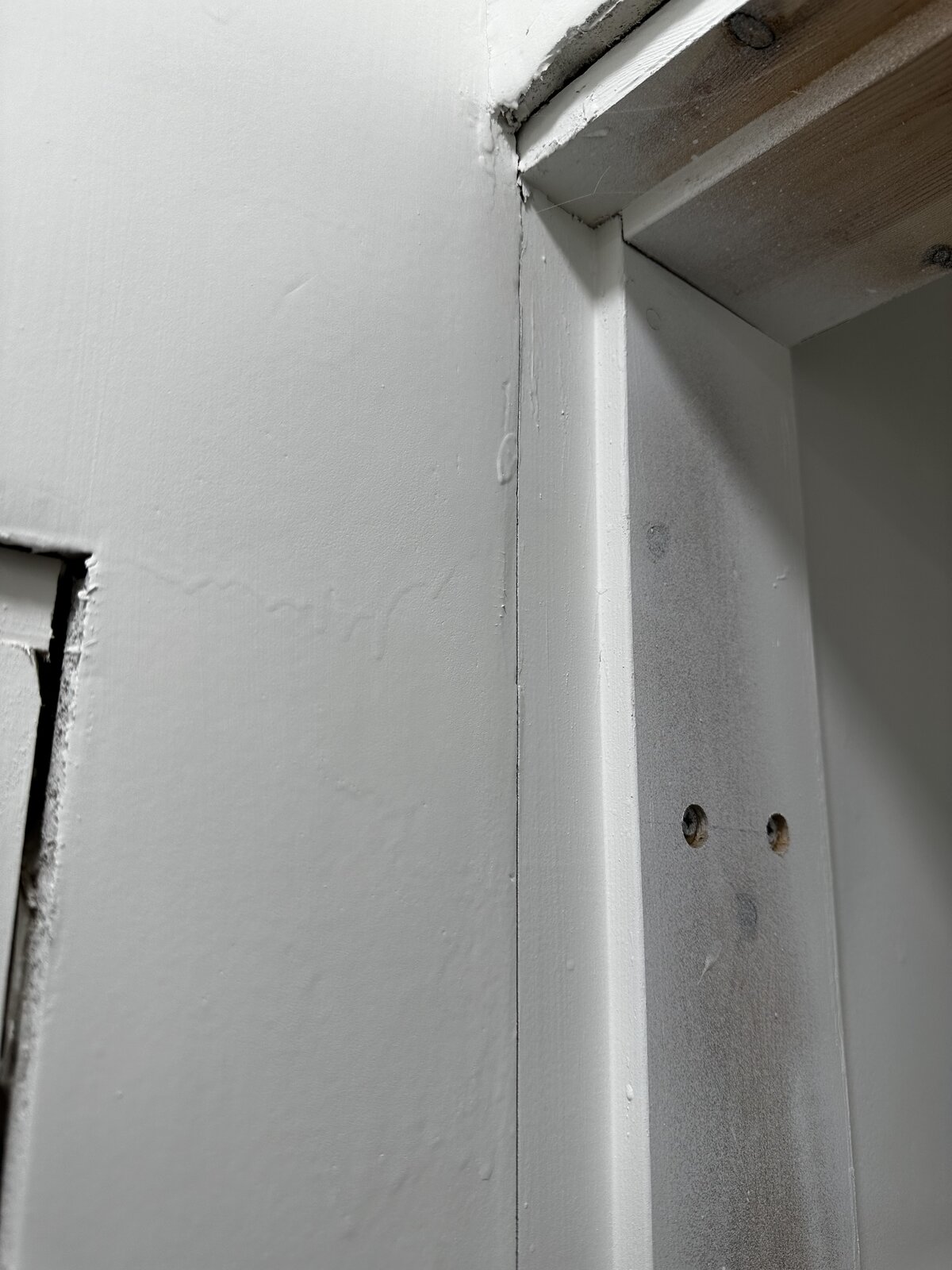 It’s a very limited space and I believe it was fitted to fit a standard door, but once dot and dabbed, it’s ended up like this. So long as I can hang a door, I don’t mind the architraves too much