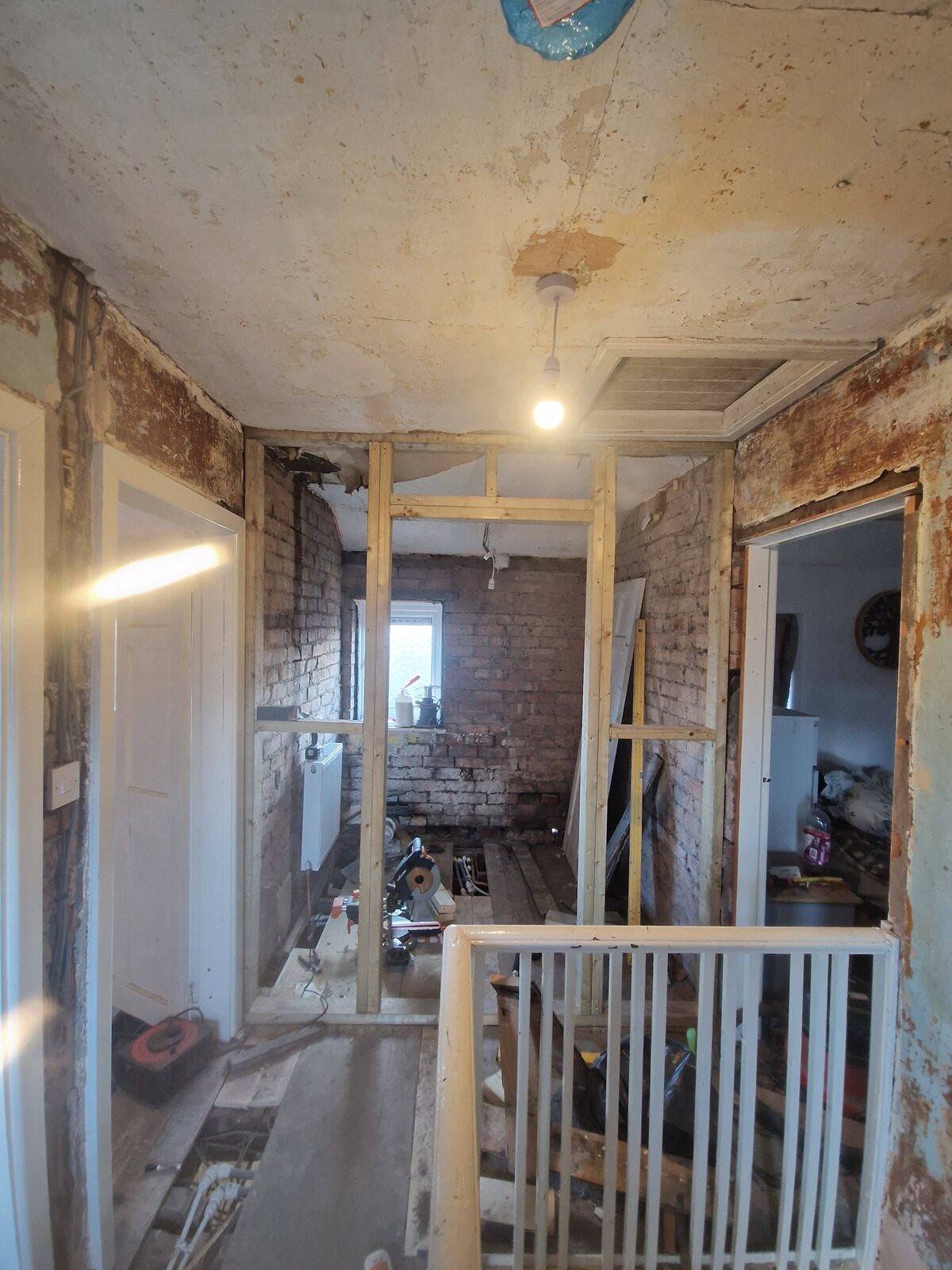 I have built a door frame for my stud wall and doubled the header. I've made a rookie mistake and measured the door height before cutting out the bottom plate...