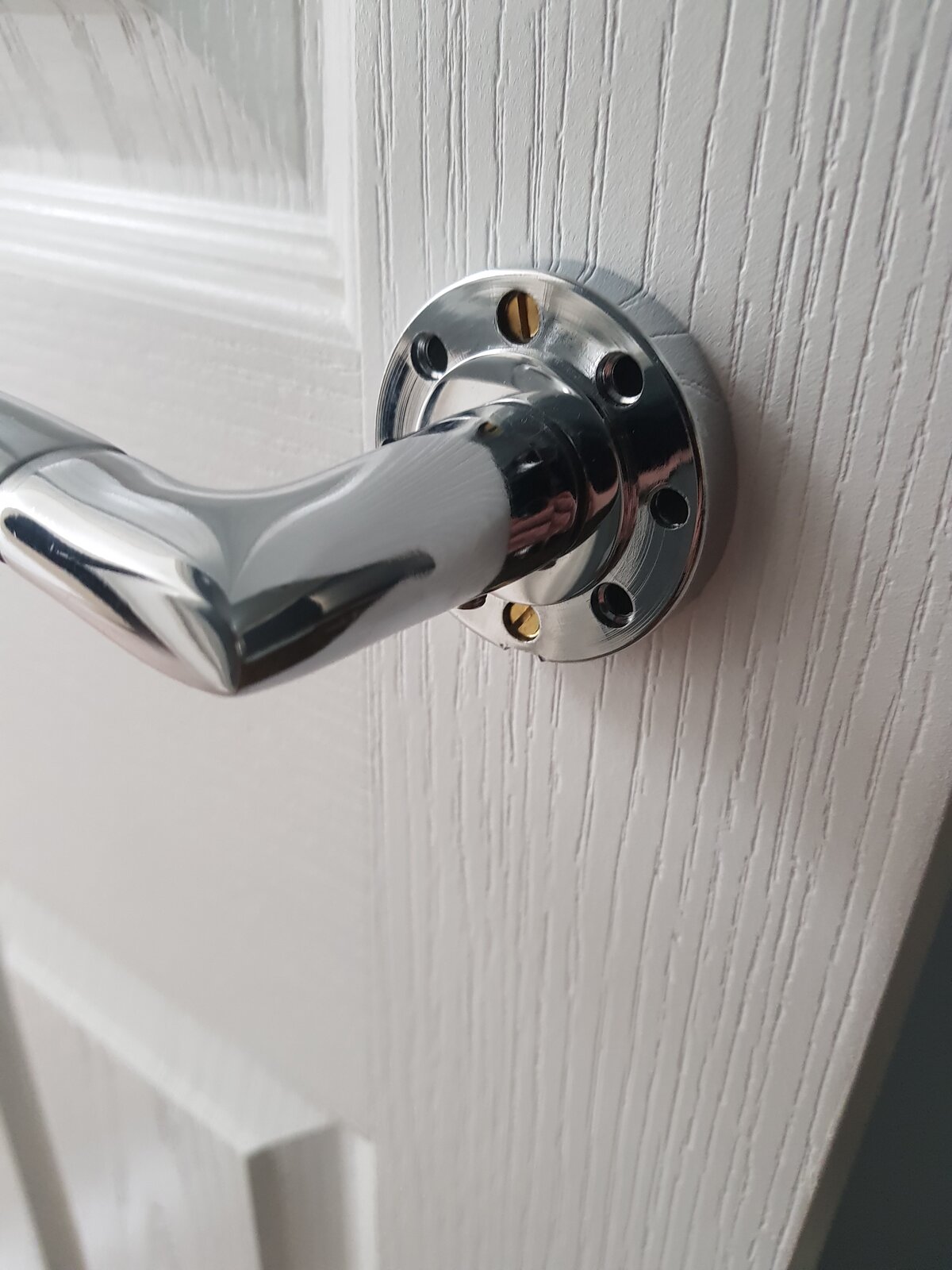 Somehow one of the screw holes on the door handle became slightly larger and is not allowing the screw head to grab on to it.