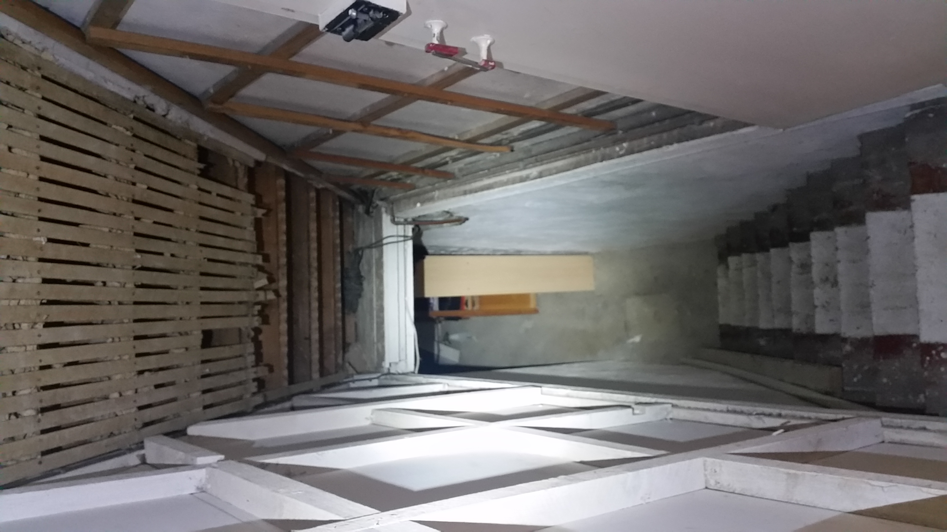 Currently access to the cellar is through a normal (upright) door below the stairs. In an effort to get a bit more usable floor space, I'm considering getting rid of this door (and the associated half-arsed stud wall) and replacing it with a floor door.