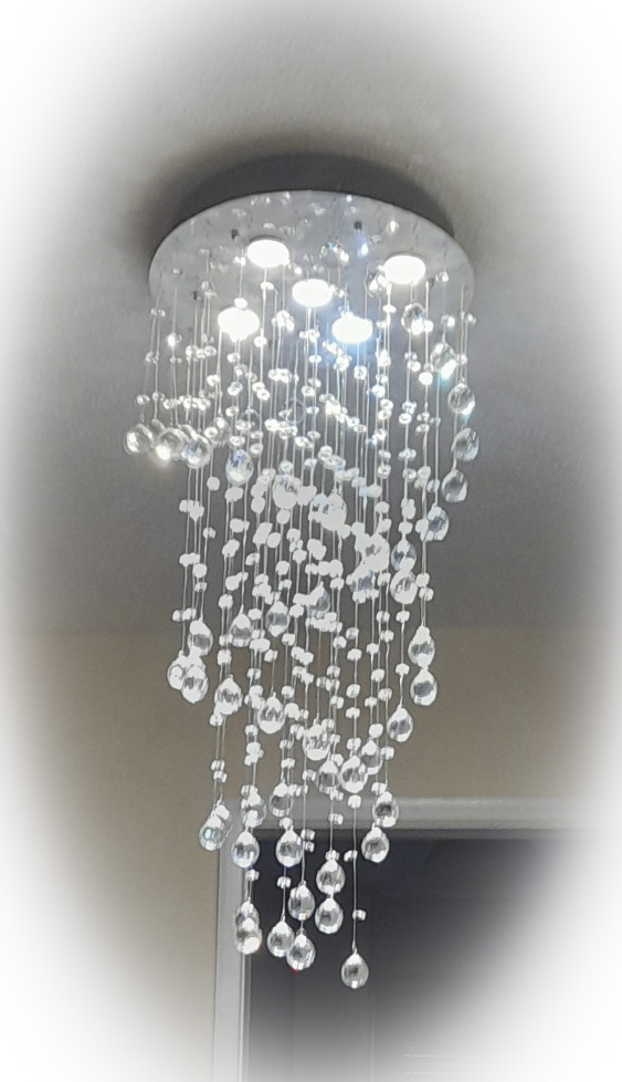 But the dangling bits spread the light and over the stairs loads of room, this would not work in most kitchens. One needs a high ceiling for the light to spread out