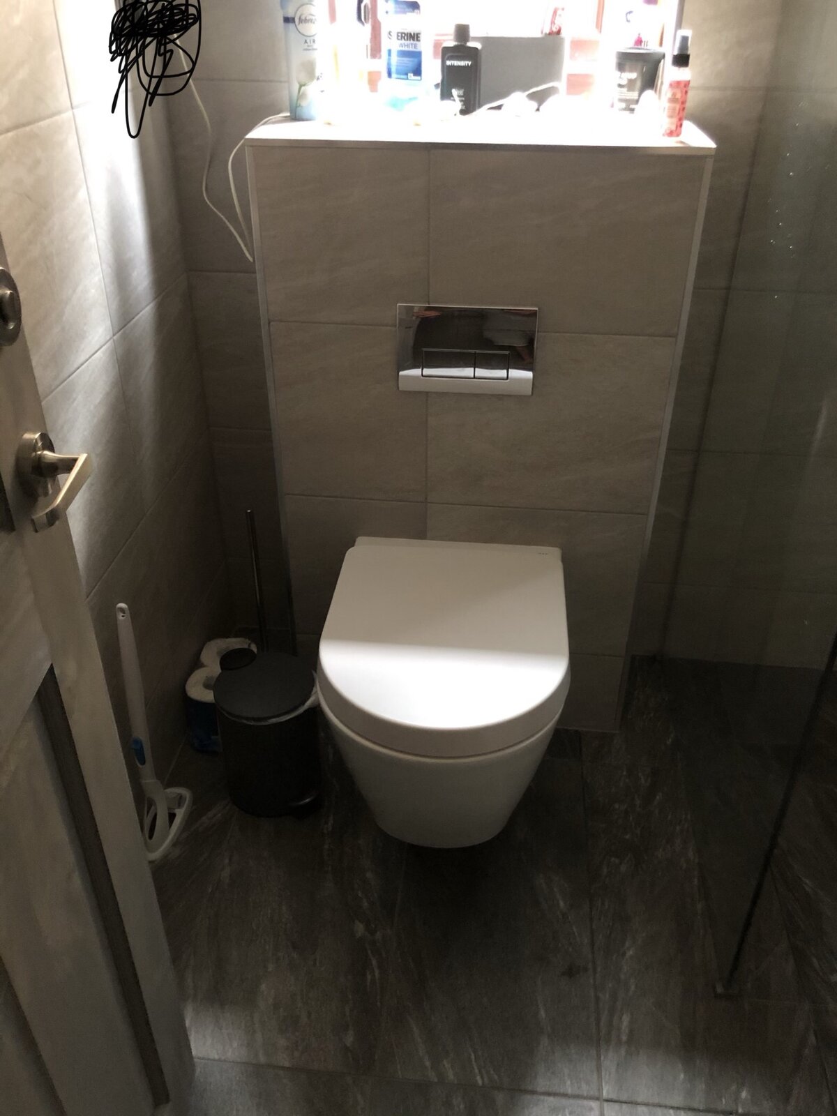 So with your sketch you'd be sensible having your drop from the bog hitting a rest bend then onwards to your manhole. You've still got an unroddable vertical from loo to rest bend...a manhole under the patio is tolerable as long as the slabs are loose laid (do yourself/future owners a favour, write the measurements for manhole position down, laminate them & hang them from the stop tap), rodding point under a laminate floor (which would take a certain amount of effort and potentially damage) isn't really on.